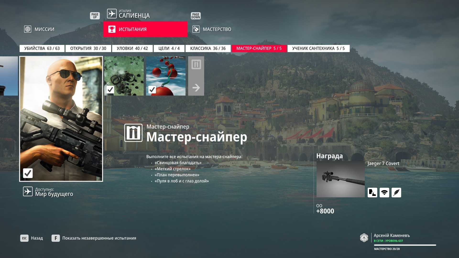 Описание: выполните все испытания на мастера-снайпера