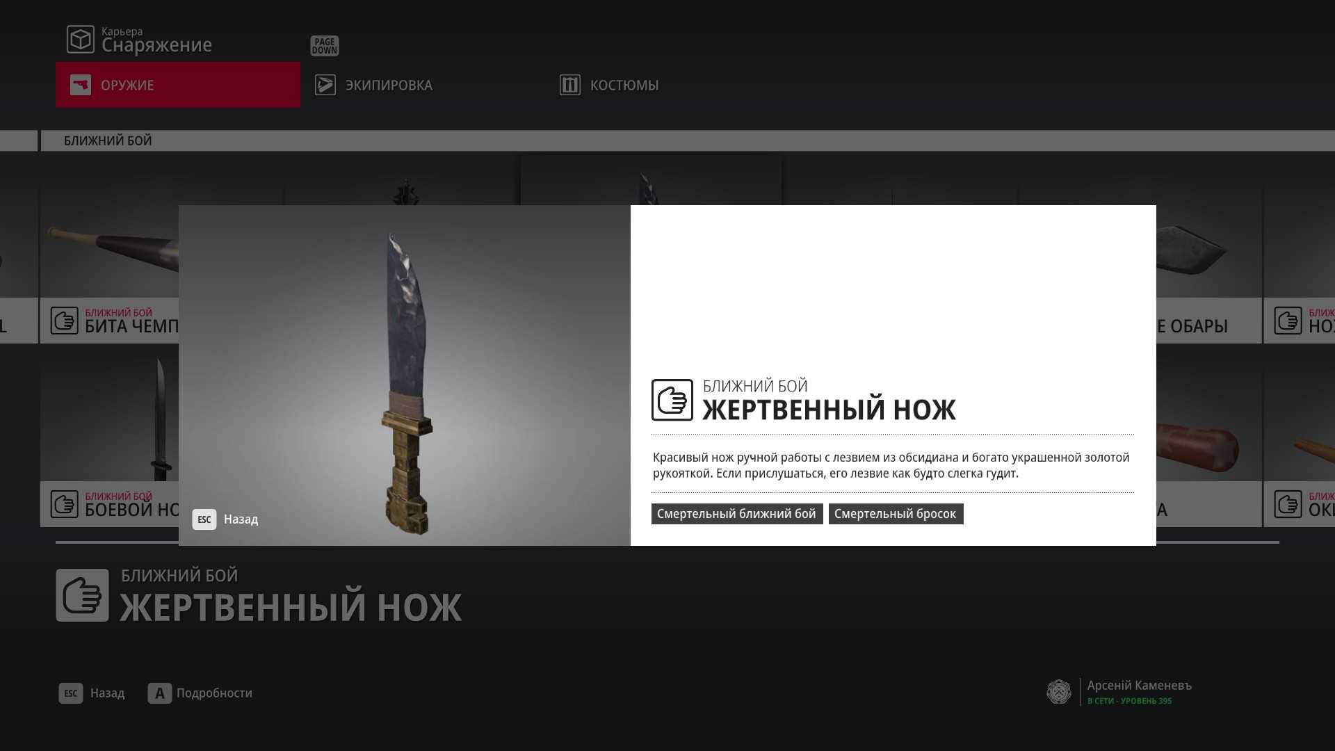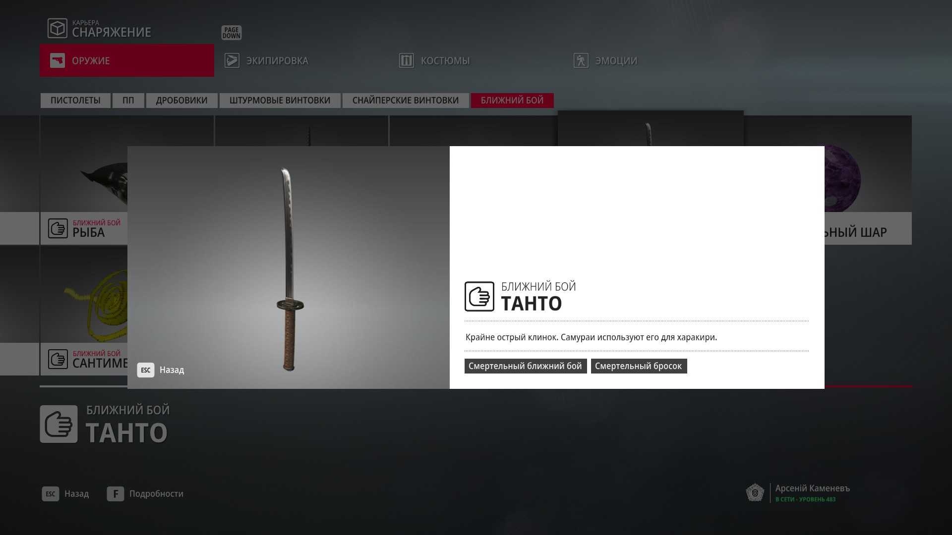 7 уровень мастерства: Начальная точка на кухне в маскировке повара и боевой нож