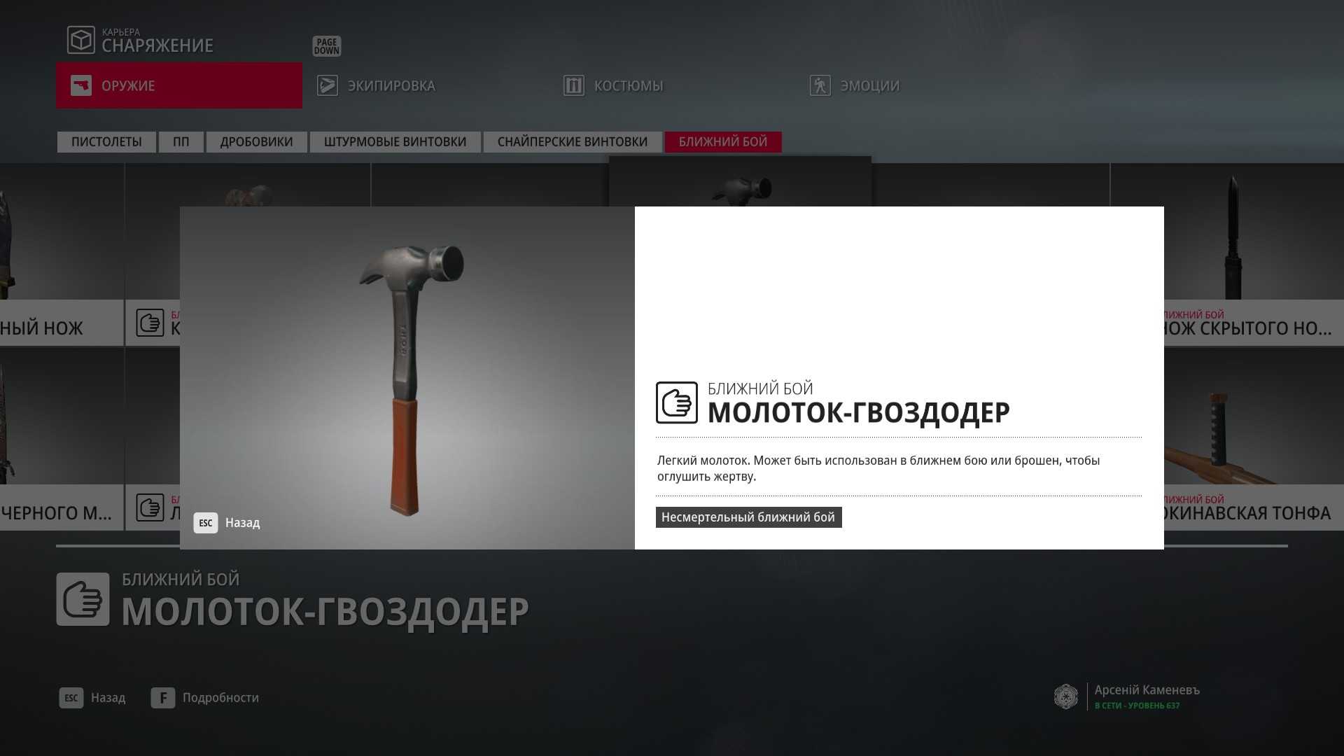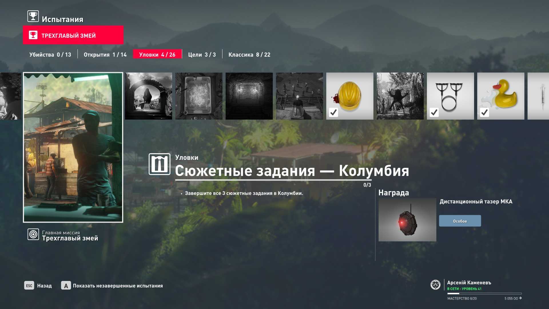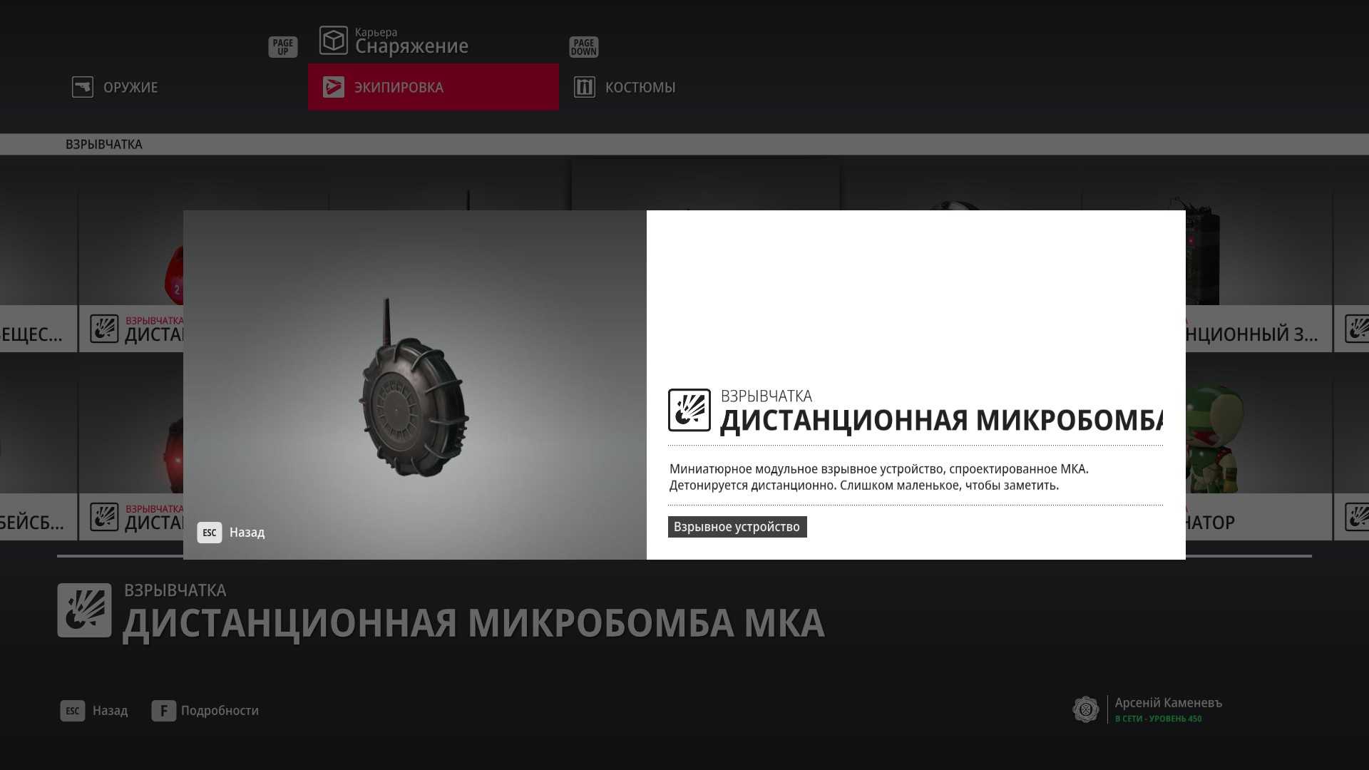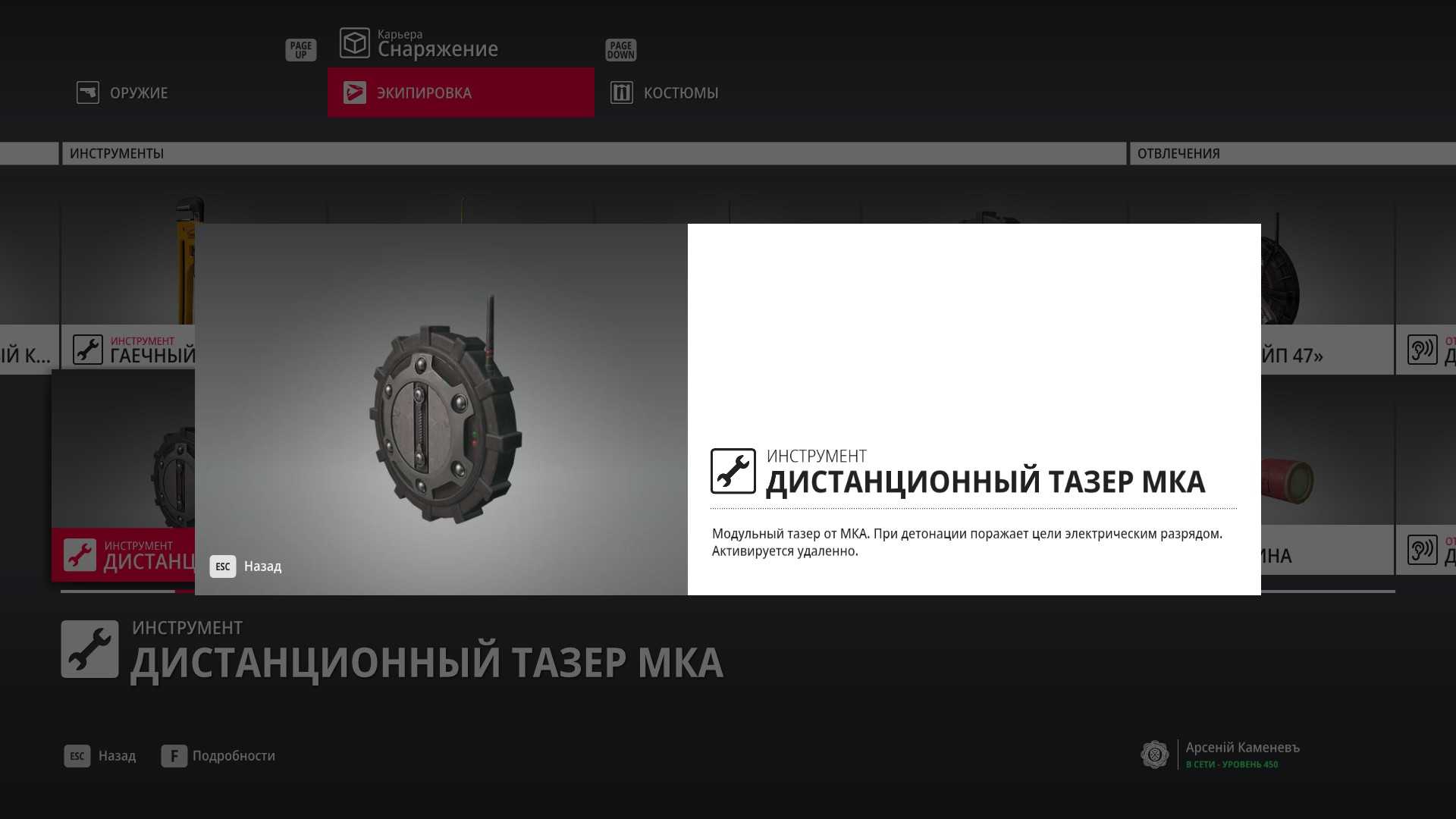 11 уровень мастерства: Начальная точка в лаборатории “Итер” в маскировке лабораторного работника 12 уровень мастерства: Тайник МКА в кладовой особняка и дробовик Enram HV