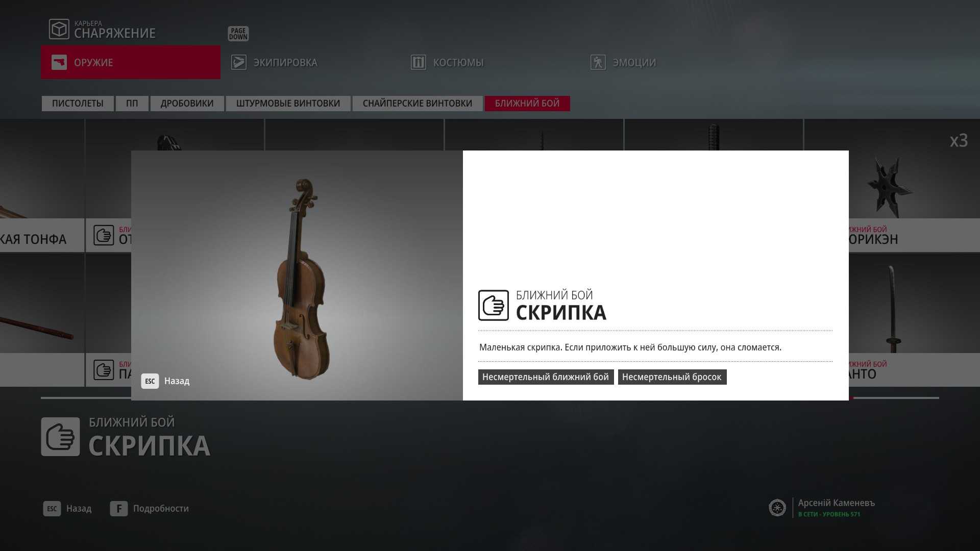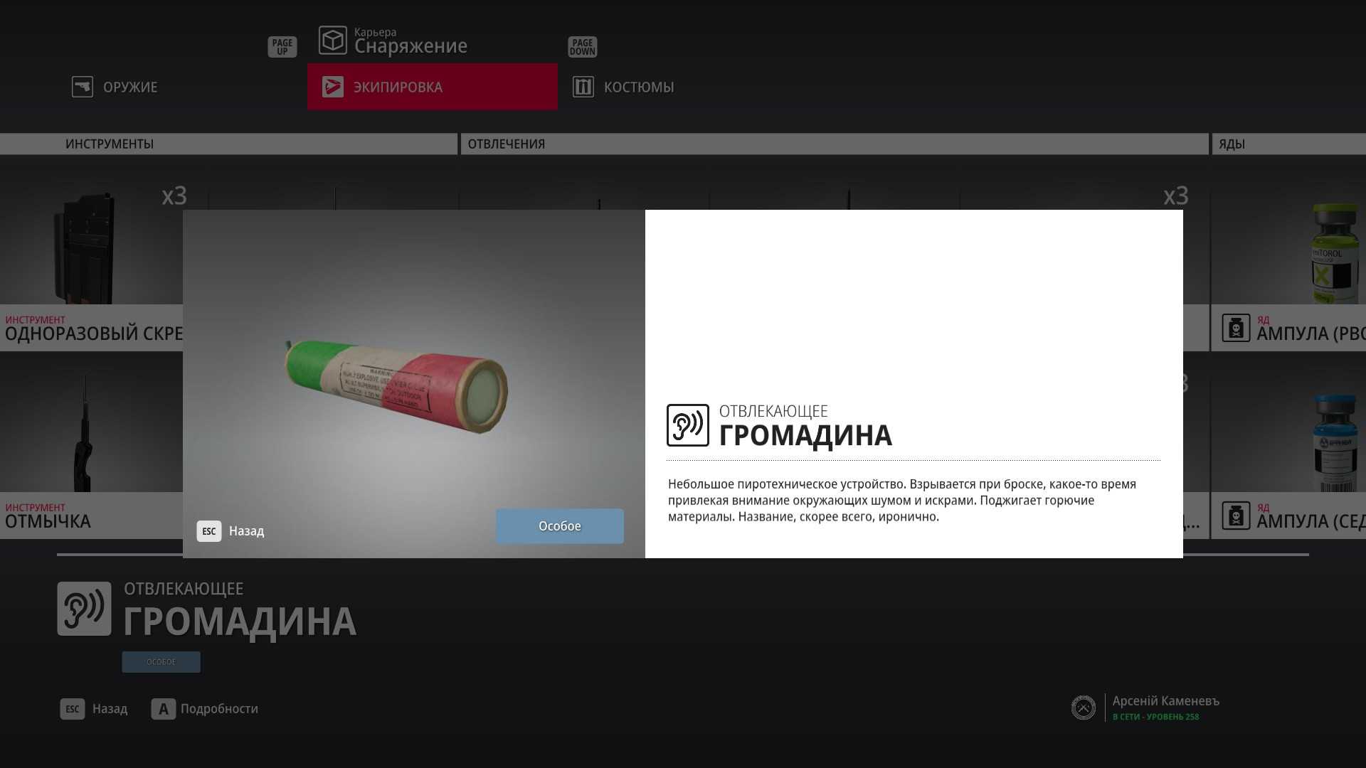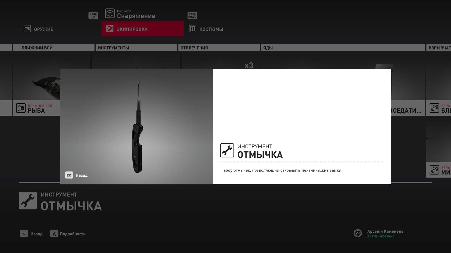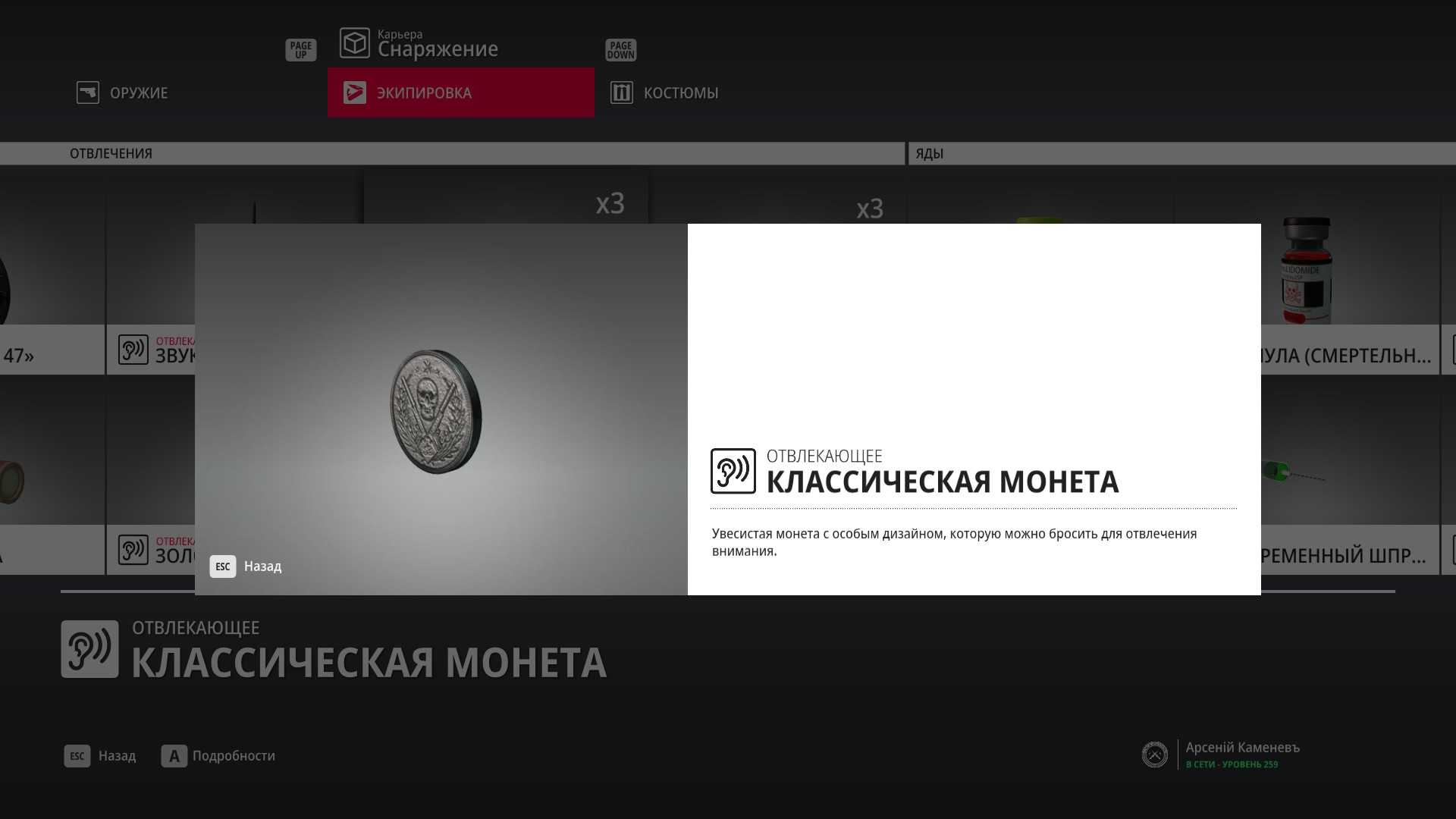 11 уровень мастерства: Начальная точка в лаборатории “Итер” в маскировке лабораторного работника 12 уровень мастерства: Тайник МКА в кладовой особняка и дробовик Enram HV