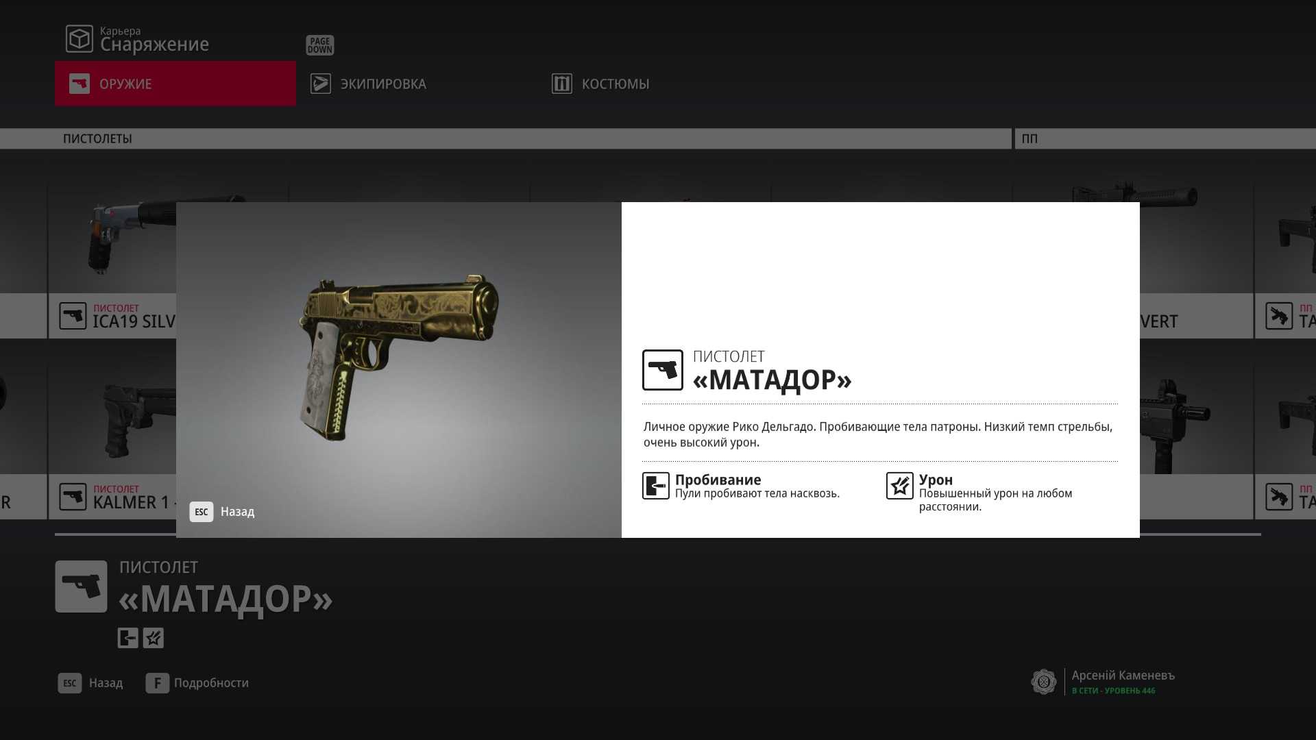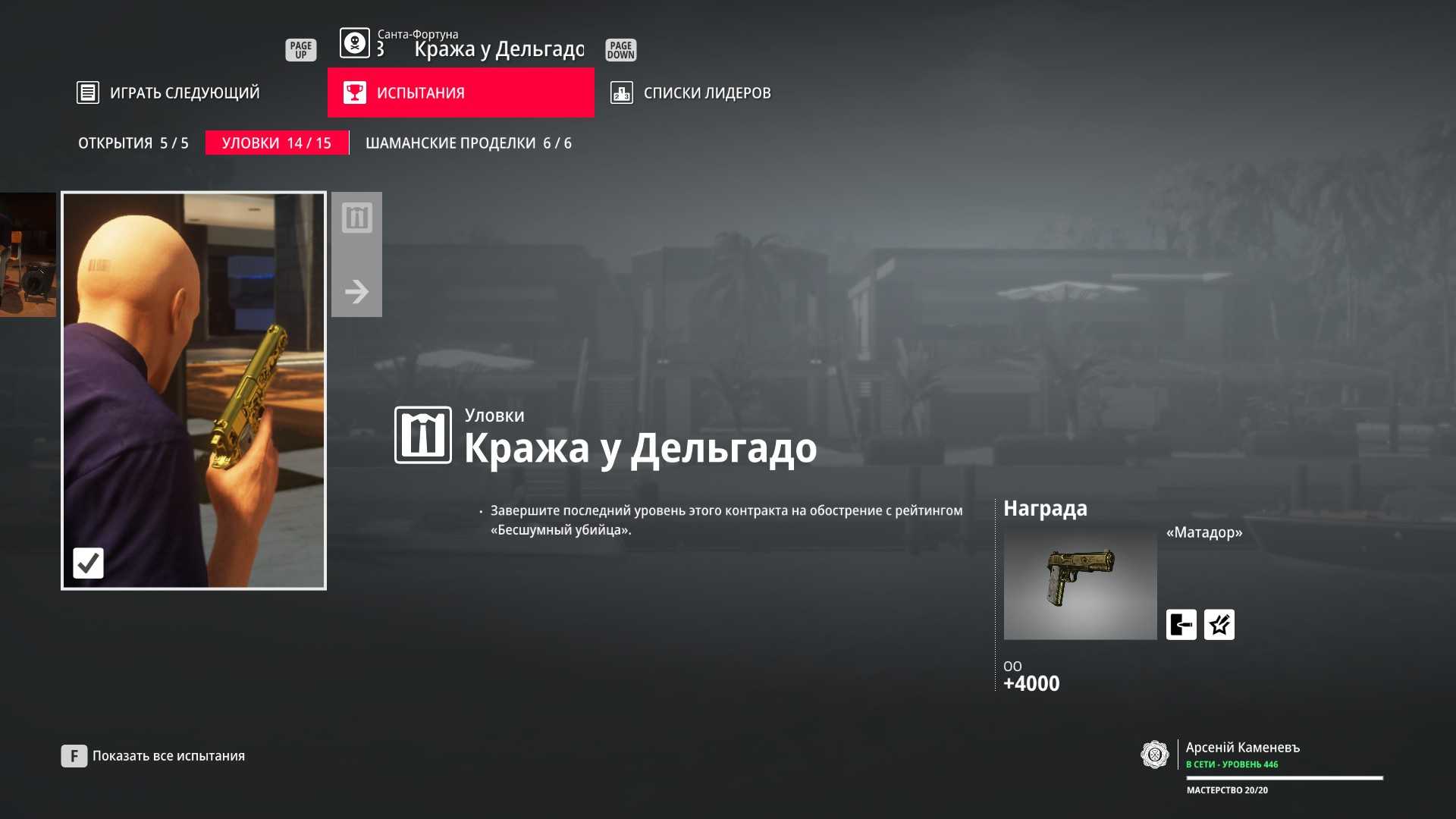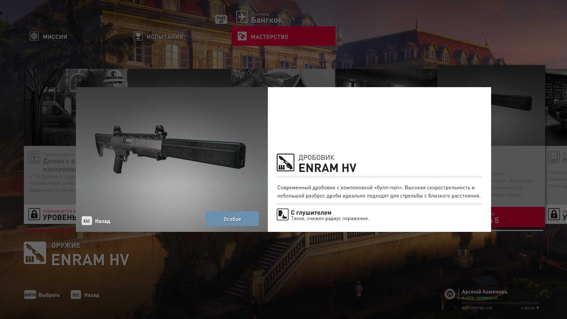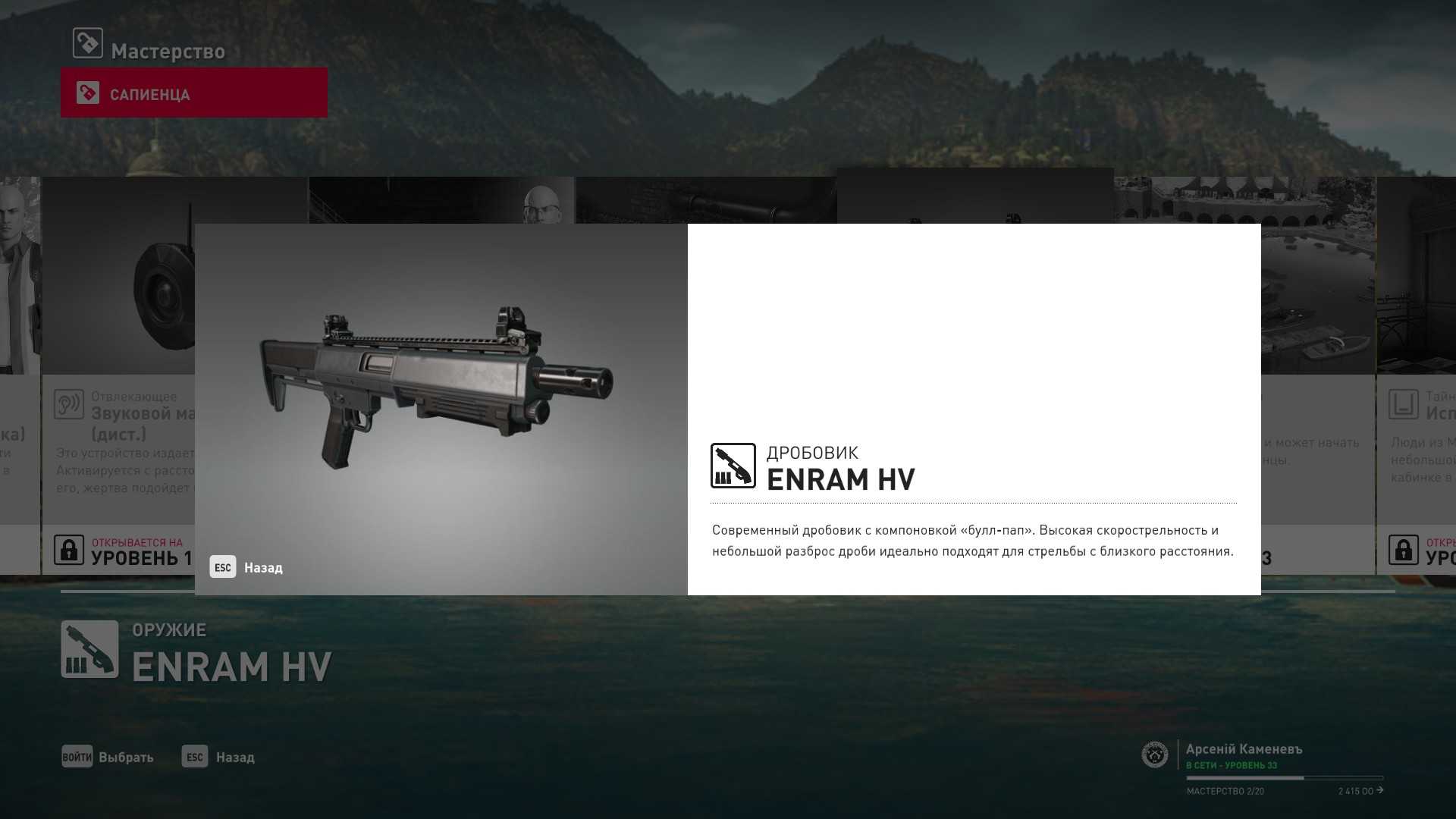 4 уровень мастерства: Начальная точка в номере Агента 47 5 уровень мастерства: Дробовик Enram HV