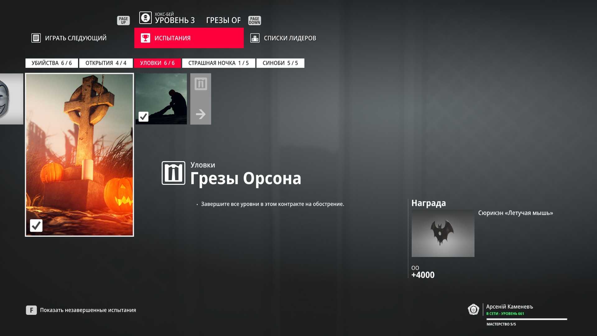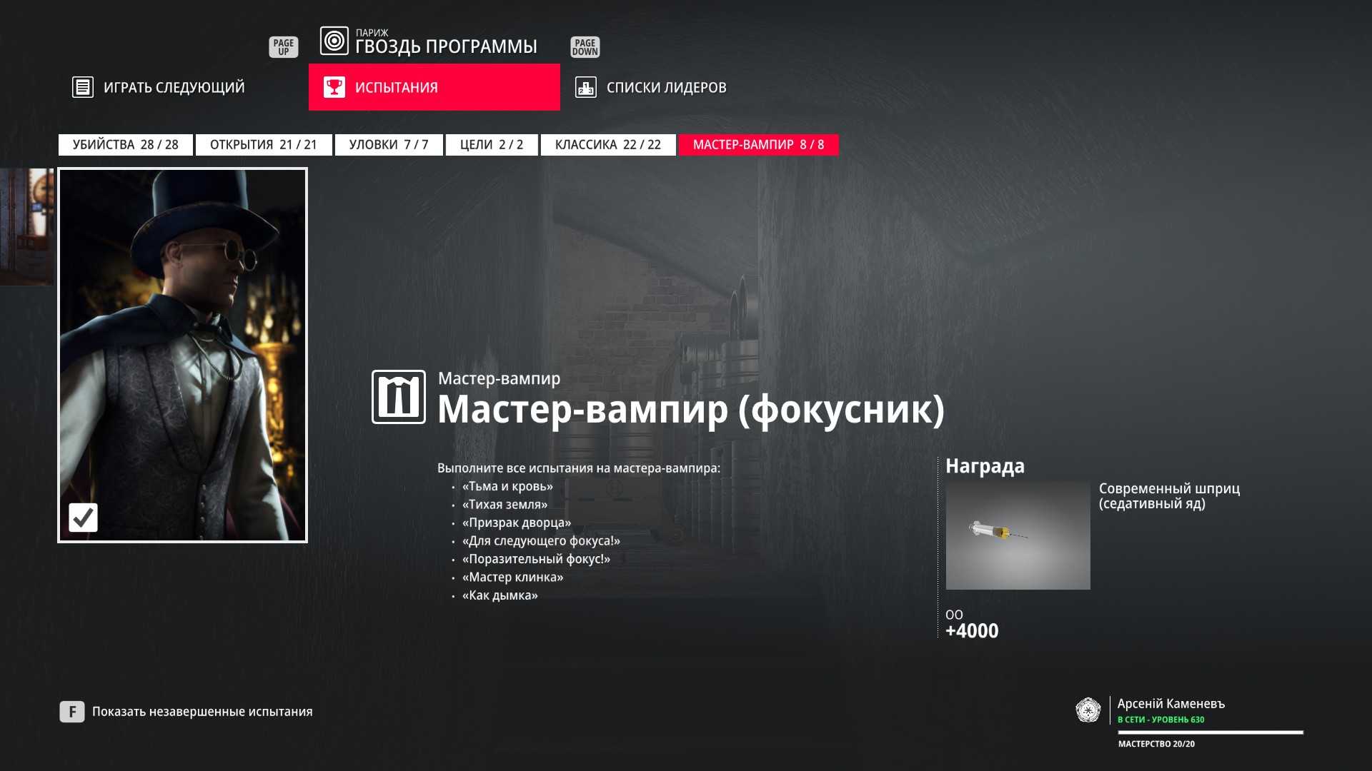 Описание: Выполните все испытания на мастера-вампира