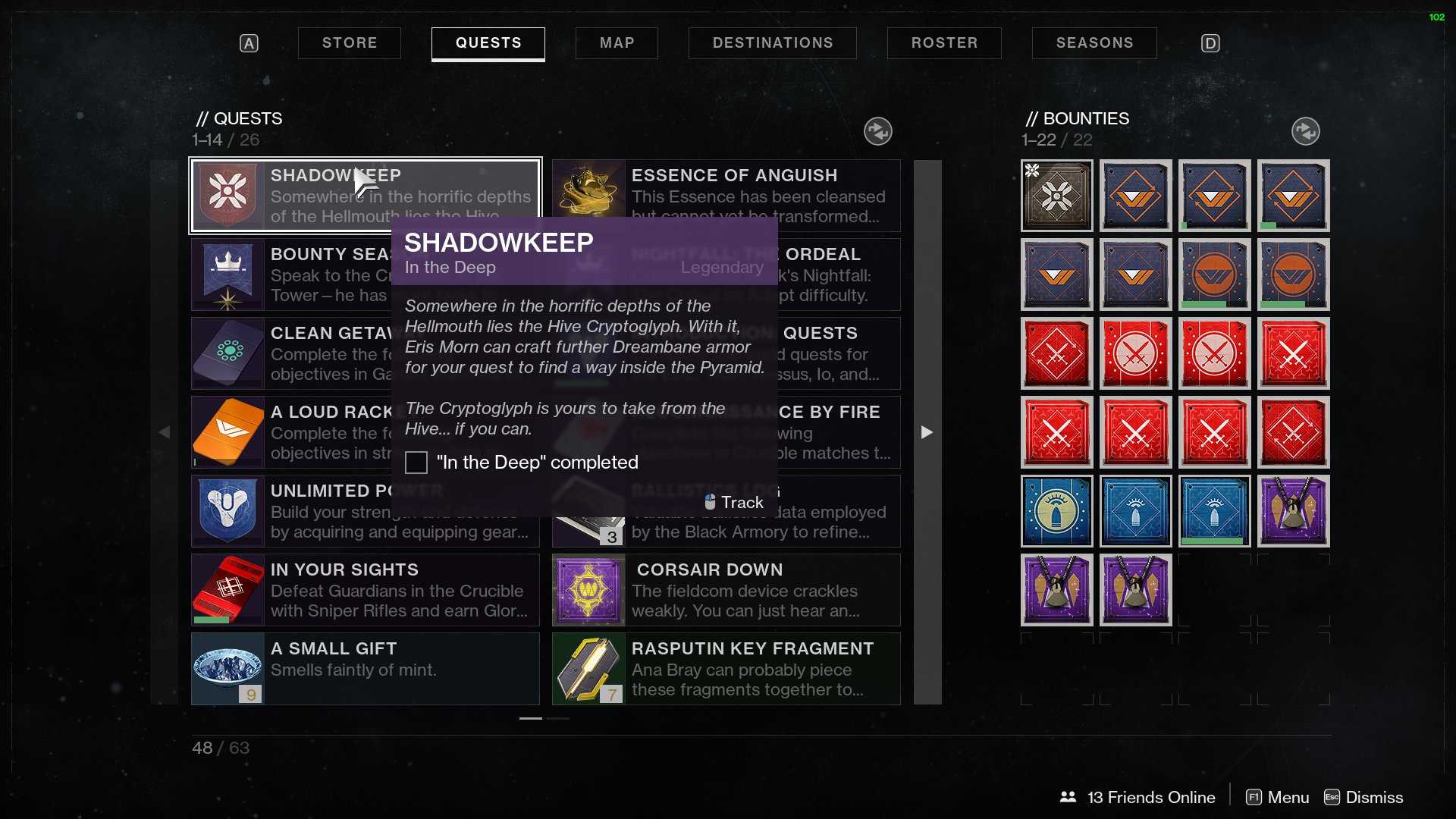 Прежде чем вы сможете сдать Сущность Мучения, вам нужно будет завершить миссию В глубине.
