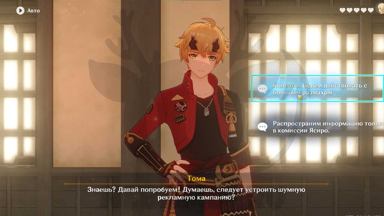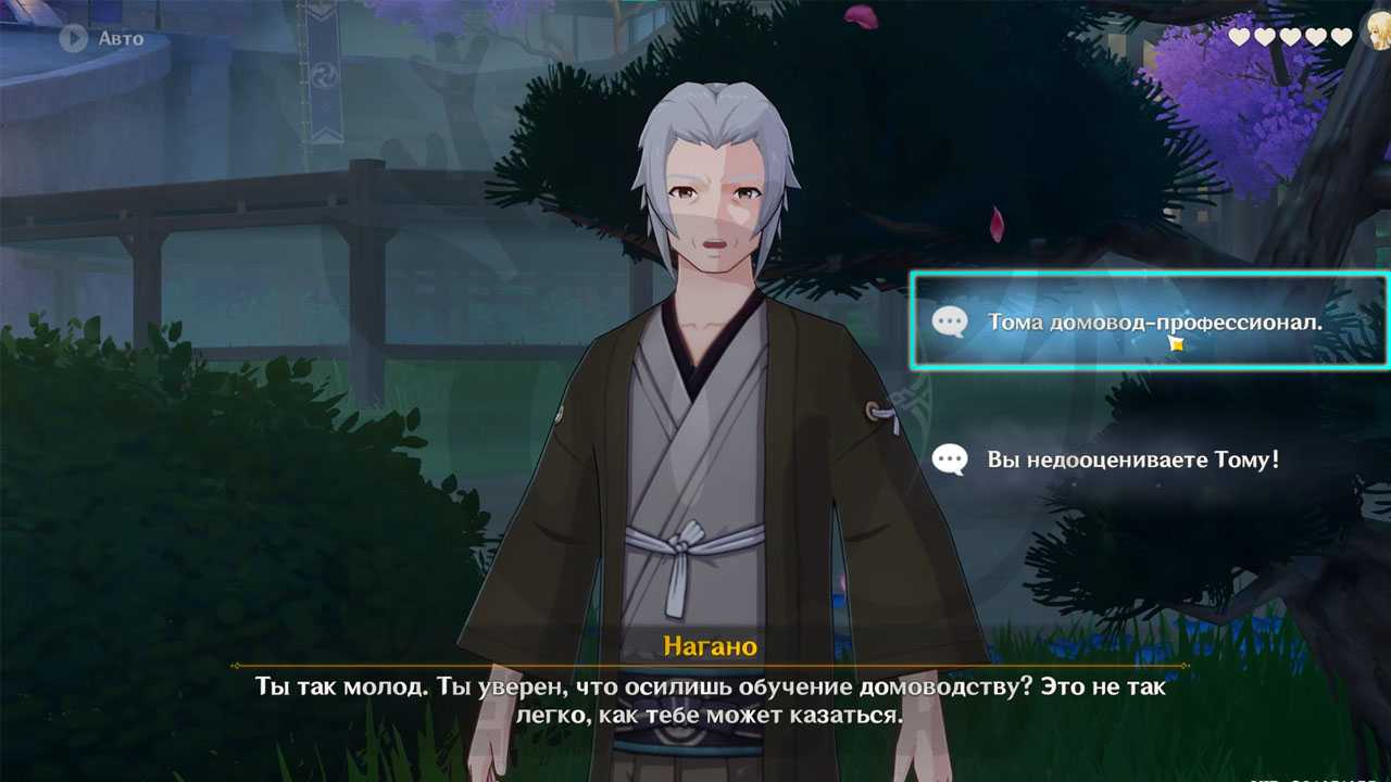 В разговоре с Нагано выберите: