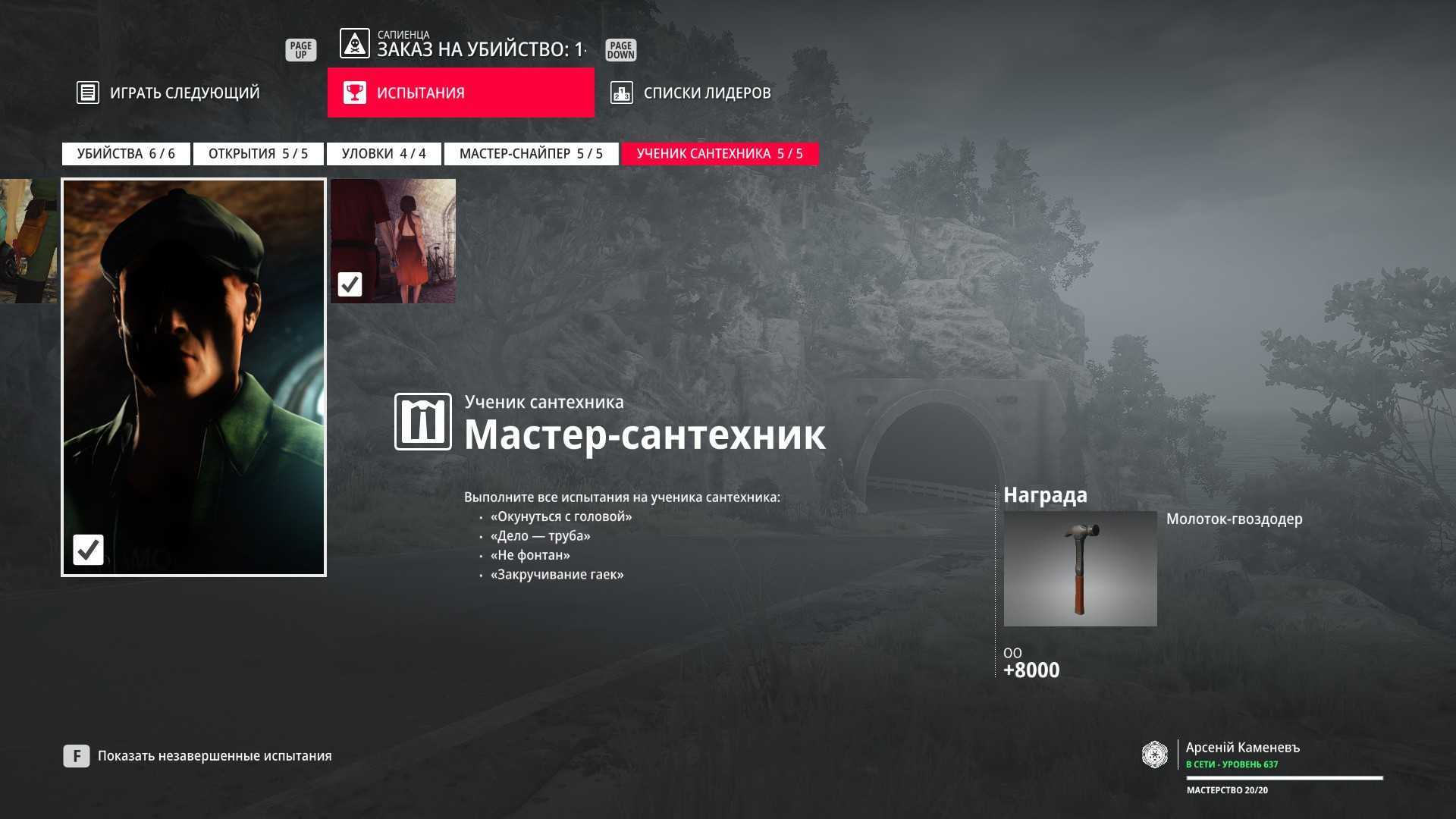 Описание: выполните все испытания на ученика сантехника