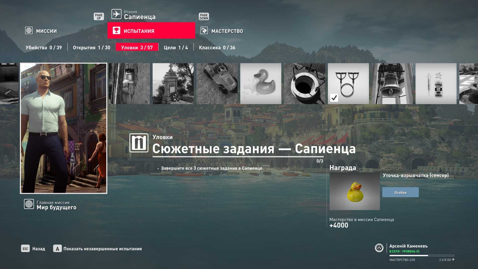 Описание: Реализуйте все сюжетные задания и завершите пять испытаний на убийства в дополнительных миссиях в Сапиенце: