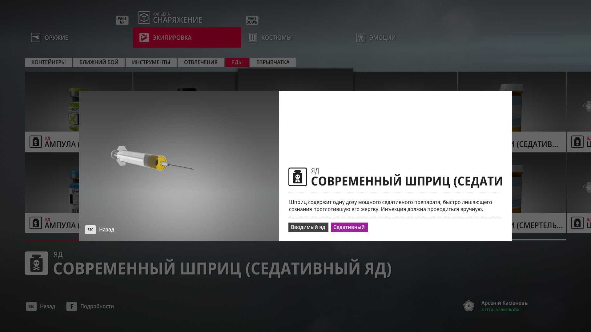 Награда: Современный шприц (седативный яд)