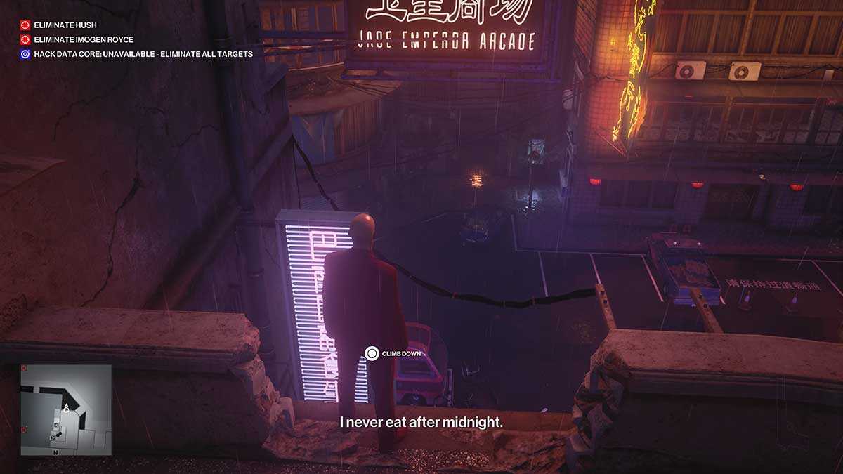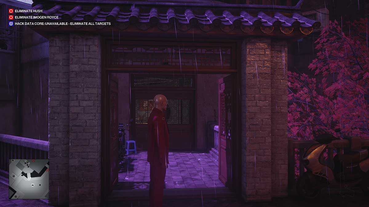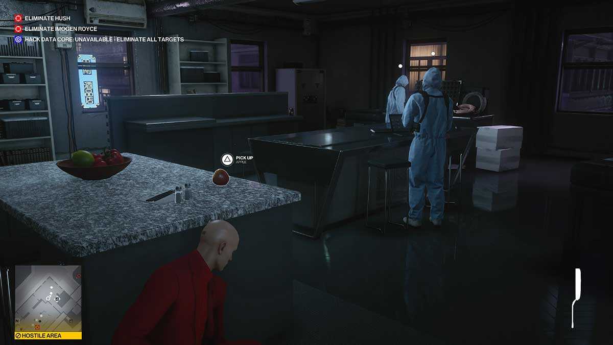 - Освежись (Juiced Up). Избавьтесь от трёх работников в розовых куртках за баром (Juice Bar) и наденьте их форму. Как только ваша цель агент Свон (Agent Swan) придёт к бару, предложите ему напиток (можно совместить с заданием «Безвкусно, бесследно»).