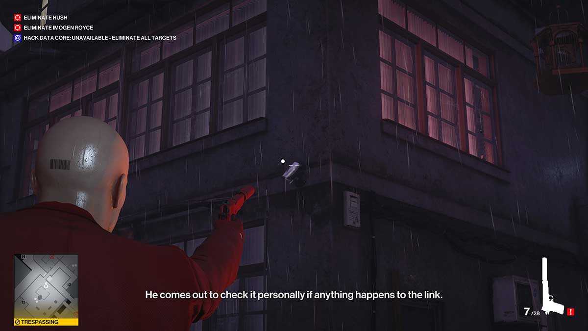 На крыше слева будет два охранника. Побудем пацифистами и позволим им жить. Просто незаметнно идем к элементам управления спутником, за огороженной зоной. Перед самой зоной, на углу здания будет камера. Пау! Камеры нет.