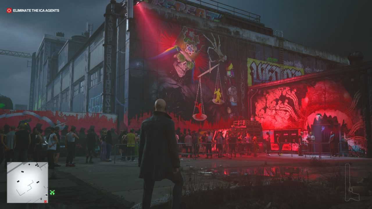 Клуб. Спускаемся вниз, в подвале находится ночной клуб. 4-ый агент ходит в толпе, как охранник. Идём за охранником, на балконе он встретится с 5-ым агентом. Проходим в комнату впереди, отключаем свет, в темноте убиваем обоих. 6-ой агент так же ходит в толпе, но для выполнения задания достаточно убить 5 агентов. Чтобы эвакуироваться, возвращаемся в лес.