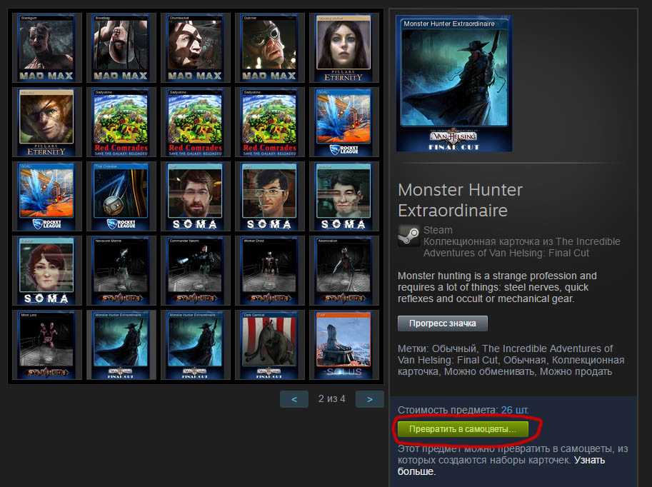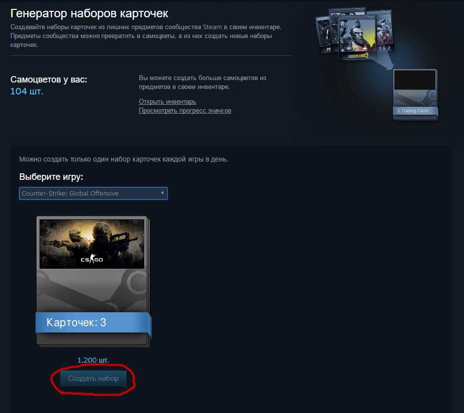 2) Покупайте карточки для значка на торговой площадке Steam. Там же можно продавать свои.