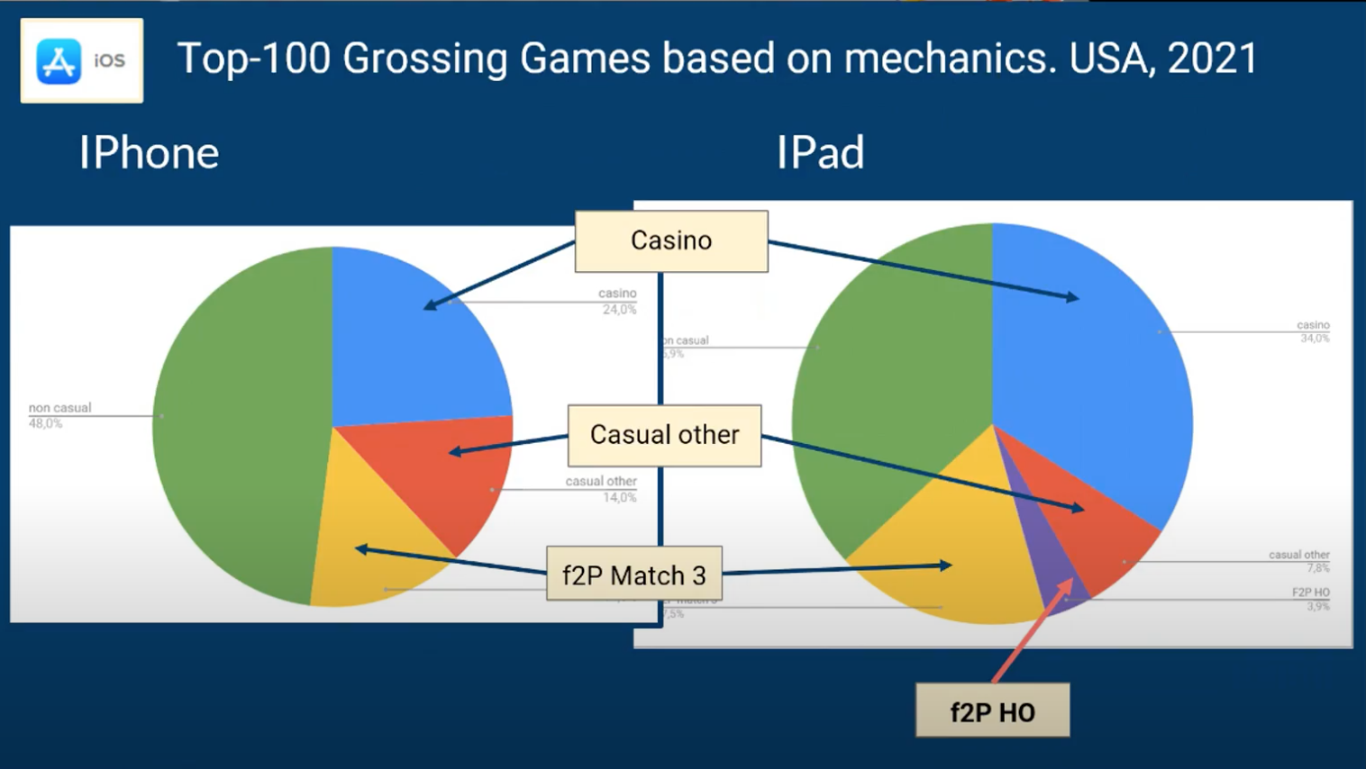 Если посмотреть на долю f2p HOPA среди других популярных механик, то видно, что расширение аудитории возможно за счет смежных жанров. Это что-то вроде интерактивных сериалов, f2p match-3, дрессапов и мидкор РПГ, также возможны заимствования с онлайн-батлов, и НО пазлов с прохождением уровней.