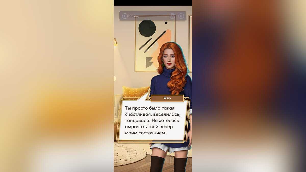 Теперь надо было выбрать платье, причёску и макияж с помощью Фло (выбор не повлияет на сюжет):