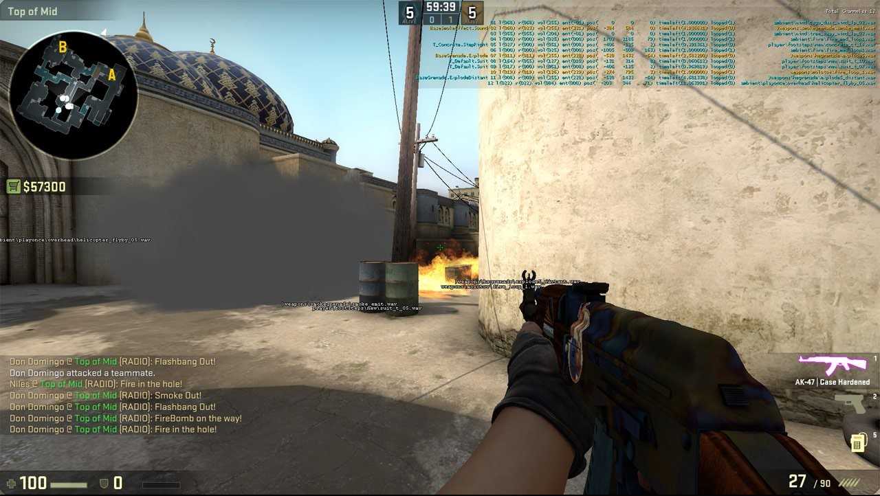 Для отображения физики гранат используйте sv_grenade_trajectory 1 и sv_grenade_trajectory_time 10, чтобы видеть траекторию ваших гранат (то есть, как они летят и как они отскакивают), рекомендуемый чит, который может оказаться очень, очень полезным, когда вы учитесь работать с гранатами в CS:GO.