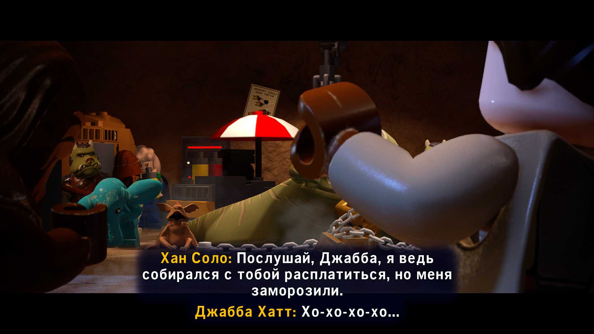 В роли Хана и Чуи вы дойдете до участка, где вам нужно решить небольшую головоломку, чтобы отпереть дверь для Люка и Леи. Вместо того чтобы решать головоломку, выстрелите из окна в красную мишень LEGO над дверью.
