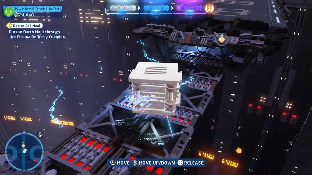 Шансы складываются в вашу пользу: Используйте Силу, чтобы найти другой путь мимо электрической опасности.Когда Дарт Мол вырвет мост после второй битвы, поднимется платформа с коробками LEGO. Поместите коробки на разорванную электрифицированную платформу, используя Силу, чтобы перепрыгнуть через нее. Это также необходимо, чтобы пройти уровень менее чем за 10 минут.