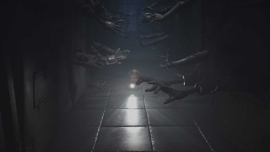 Главная героиня, маленькая девочка по имени Шестая в ярко-желтом дождевике, просыпается в чемодане в странном и жутковатом месте, которое разработчики называют Чрево. При себе у нее зажигалка, с помощью которой можно зажигать лампы и делать сейвы (автосохранение тоже есть), ну и бороться с непроглядной местами темнотой. Само Чрево устроено, как водится, парадоксально, но мир проработан с такой тщательностью, что исследование его приносит даже больше удовольствия, чем решение интуитивных головоломок или улепетывание от врагов. Что за глаза в дверях и на решетках окон, напоминающие Билла Сайфера из Графити Фоллз? Черные следы детских ручек и ножек, прямо как в трейлере Death Stranding? Что-то общее ближе к концу угадывается и с «Унесенными призраками» Миядзаки, и с произведениями Франца Кафки.