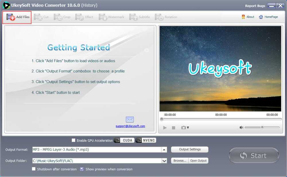 Загрузите, установите и запустите UkeySoft Video Converter на Mac или Windows, затем добавьте в программу альбомы и песни flac.