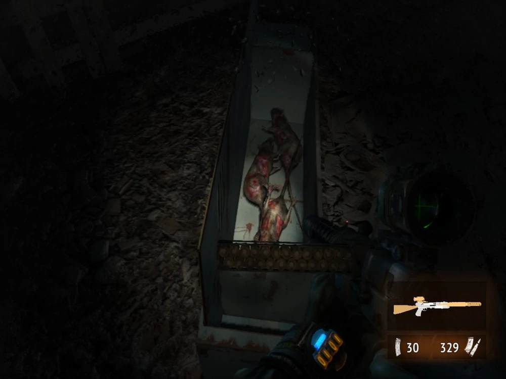Далее предстоит отстреливать мутантов, однако лучше спасаться бегством. Возвращаемся в подземелье через башню воздуховода метро.