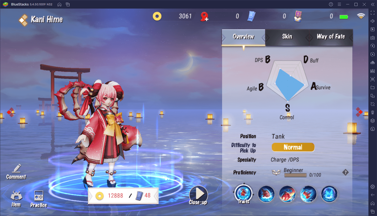 Одна из бесспорных чемпионок верхней линии — Кани Химэ. У неё много умений контроля, большой урон и защита, она сильна в поединках в 1 на 1, а также является отличным сикигами для нейтрализации самых сильных игроков вражеской команды. Ее единственный недостаток в том, что она уязвима к дальним атакам, и поэтому Кани Химэ довольно сложно правильно использовать в бою.