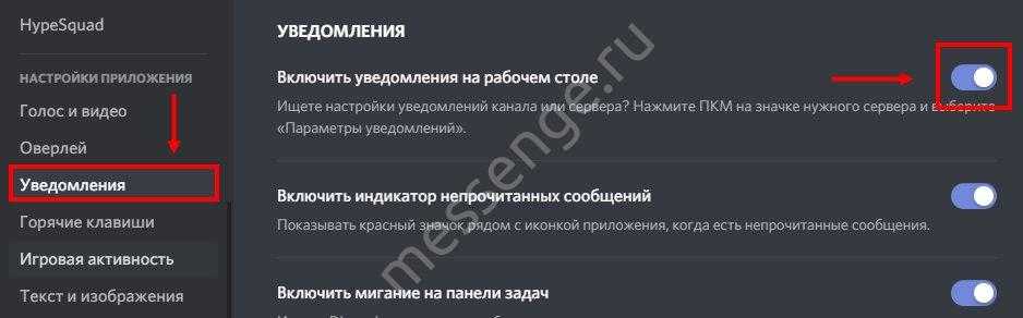 - Отключите параметр «Включить уведомления на рабочем столе»