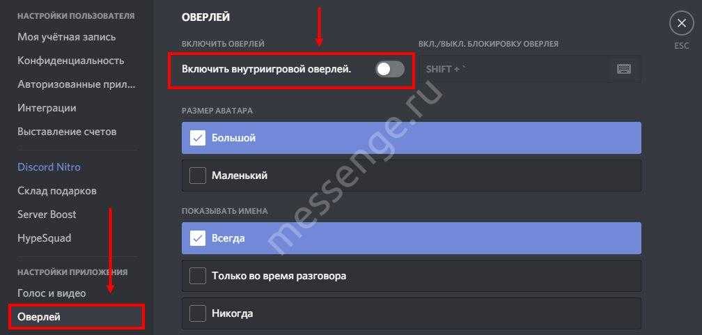 - Снимите тумблеры в строке «Включить внутриигровой оверлей» и «Показывать уведомления текстового чата» .
