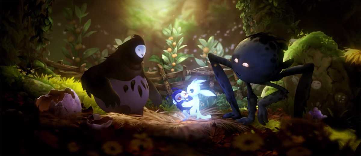 Так вот в Ori and the Wils of the Wisps этот птенчик появляется на свет в окружении всех трёх главных героев оригинала — самого Ори, его приёмной матери Нару и их друга семьи Гумо.
