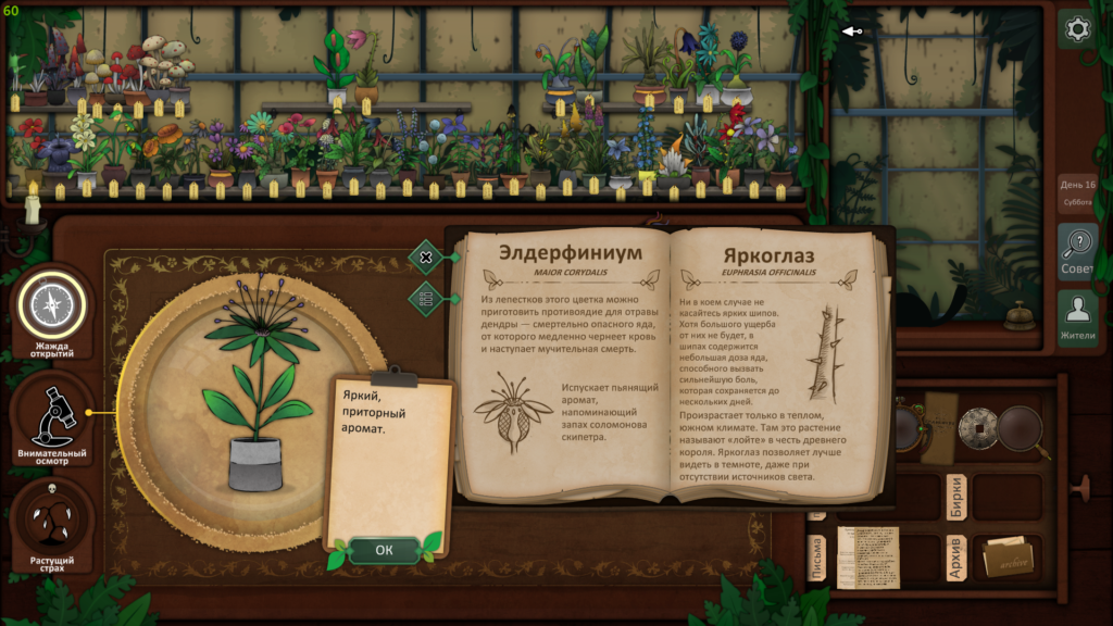 Вашему другу Амосу нужен эликсир Бэйлока, пора использовать новую лабораторию. Три растения, которые вы должны использовать, это Гаситель, Яркоглаз и Притла.