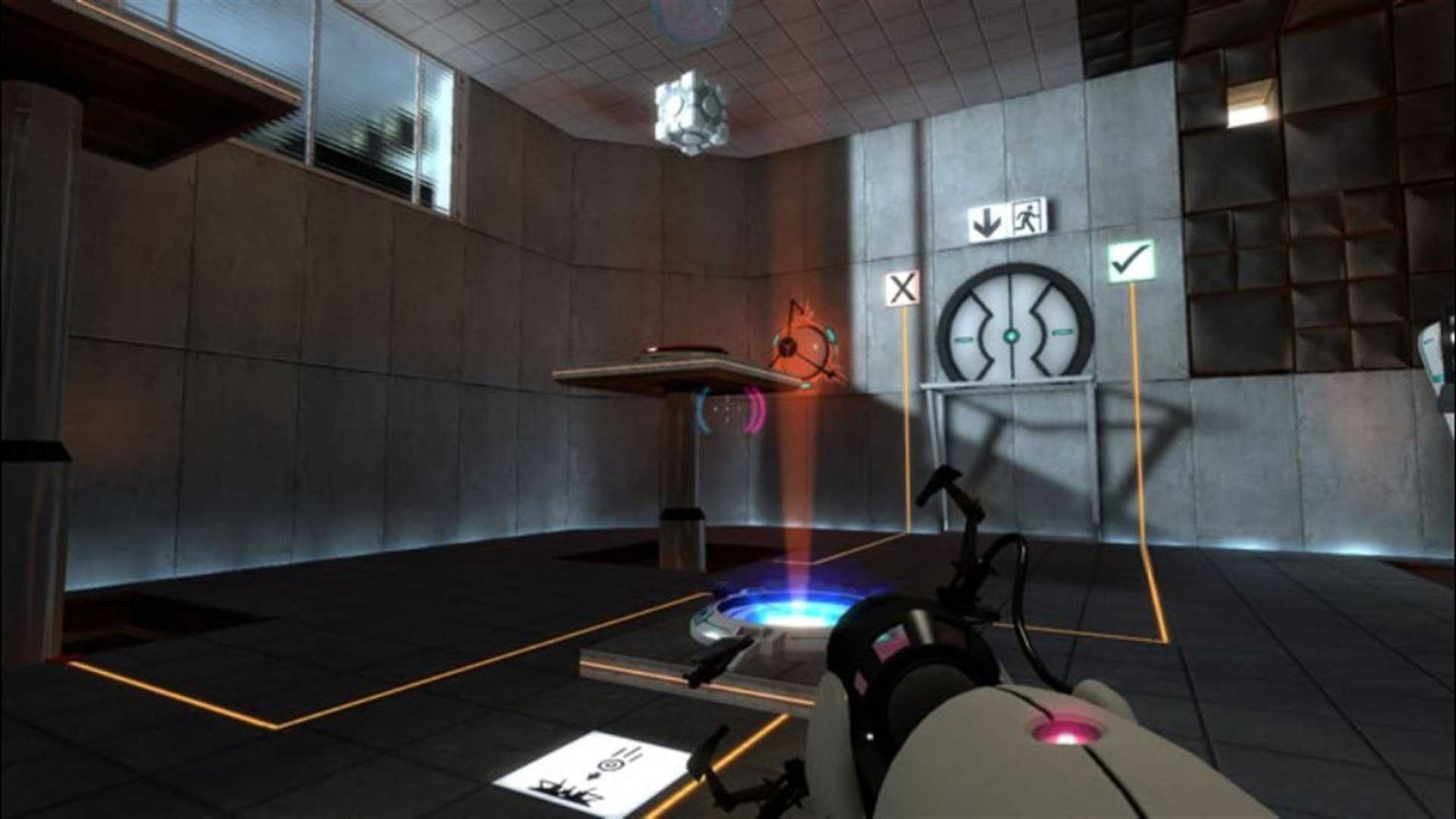 На пути к этой цели Челл предстоит пройти через множество тестовых камер с головоломками. Скриншот: игра Portal / Valve
