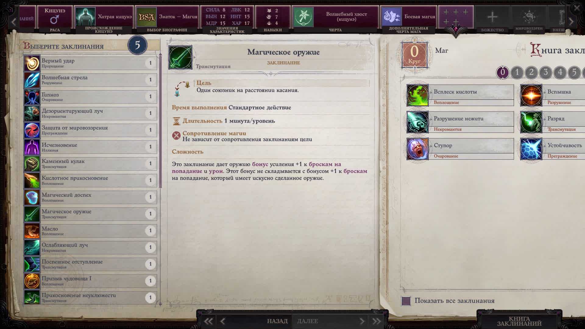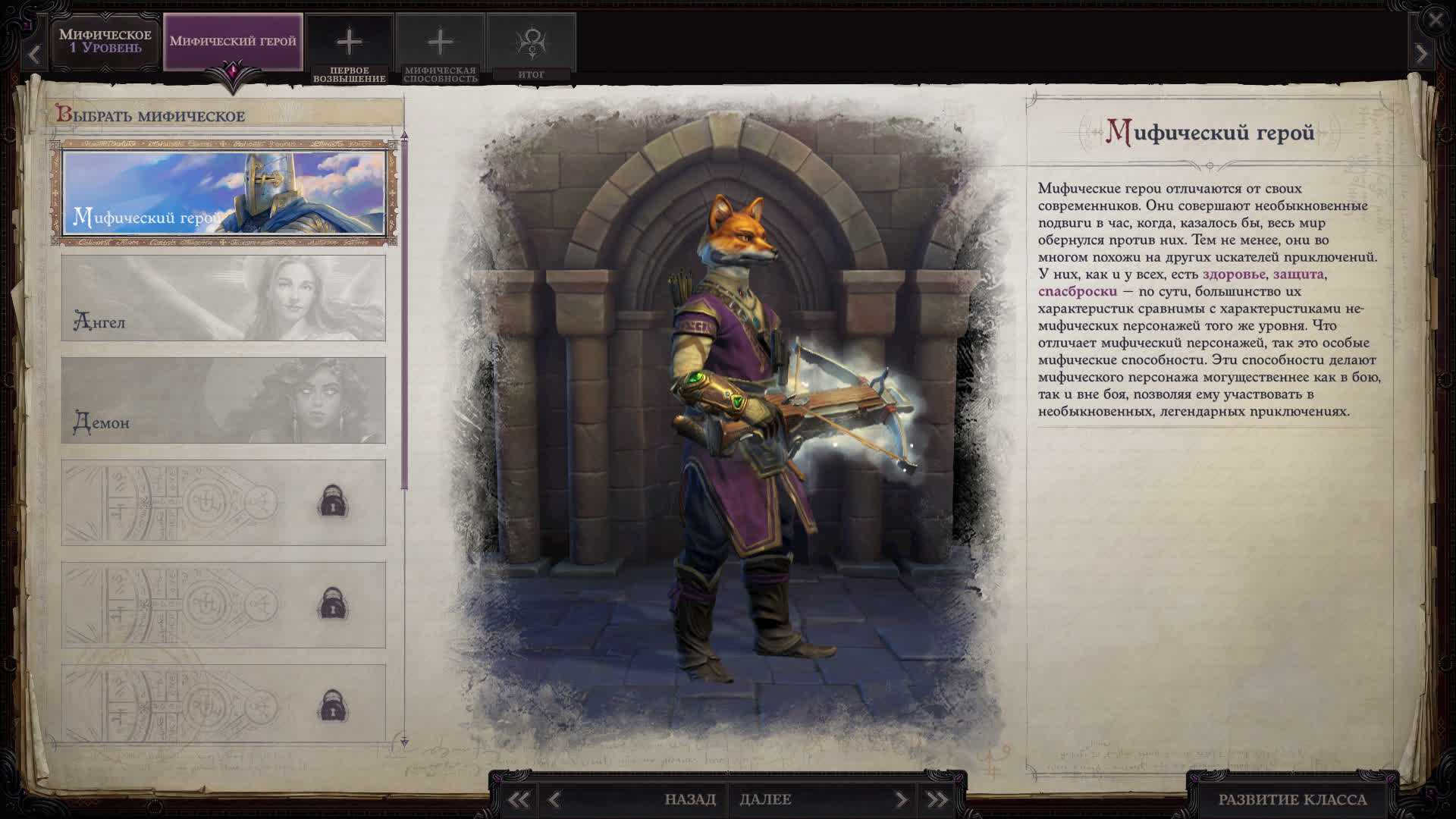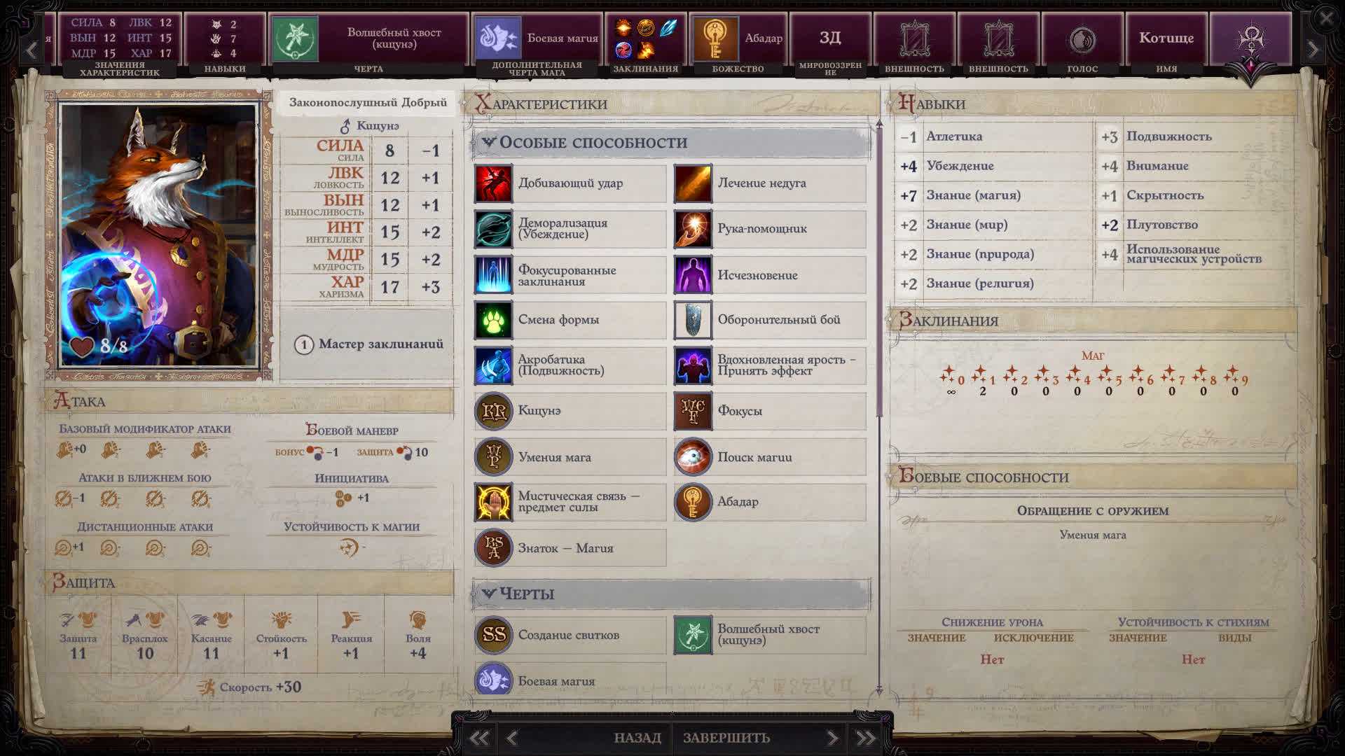 В такой сборке Дейран не участвует в бою, как воин, но использует волка с неплохим уроном. Некоторое количество очков мы вбрасываем в Конституцию, так как нам нужно, чтобы герой мог выдержать атаку врага, для которых целитель в команде является первостепенной мишенью.