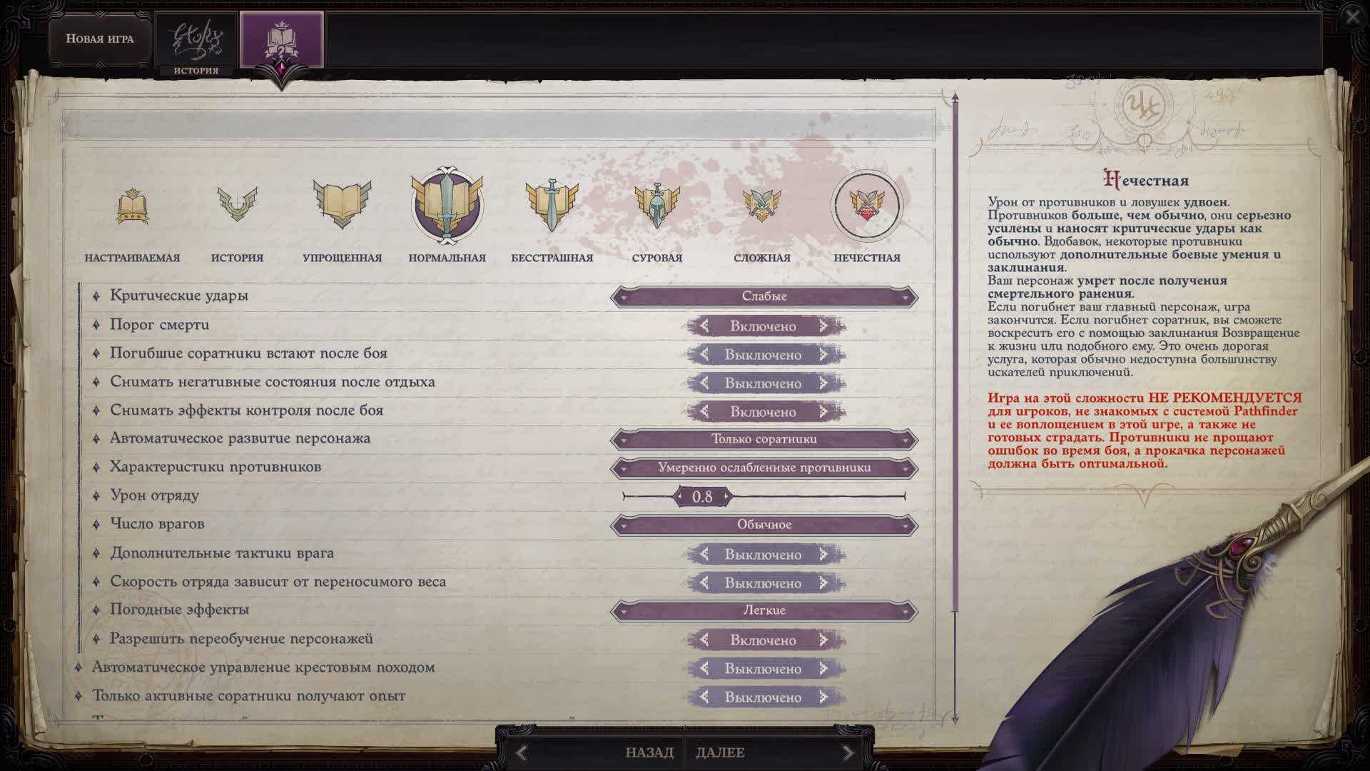 По умолчанию в игре семь уровней сложности. От «Истории» до «Нечестной». Все они покрывают почти все потребности аудитории. Новички с удовольствием пробегутся по сюжету, не испытывая сложностей в сражениях и не занимаясь почти ничем, кроме исследования уровней и чтения диалогов.
