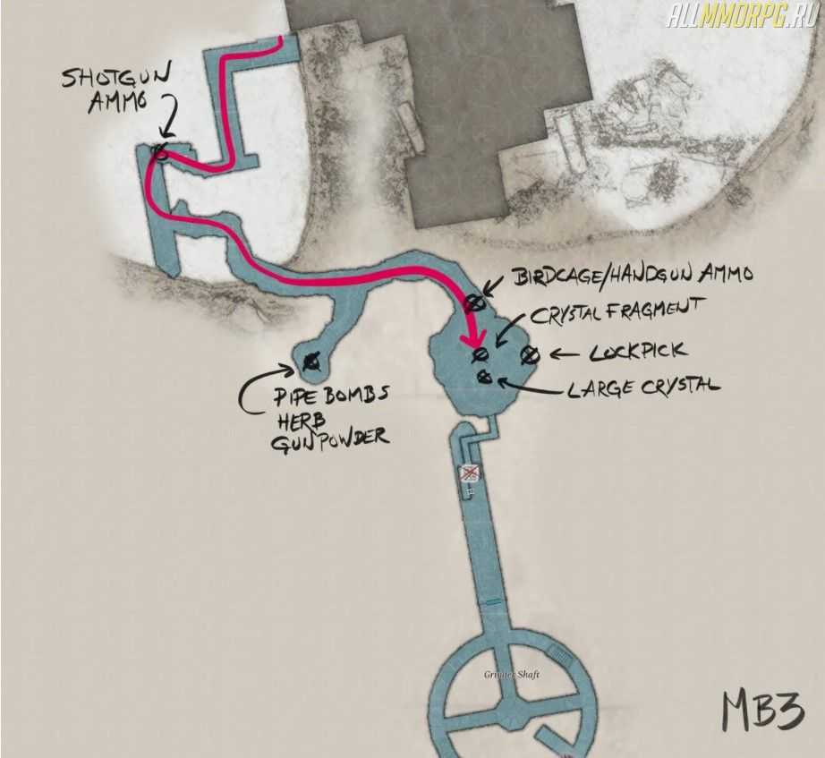 Разбейте ящик и заберите с него патроны для дробовика. После сверните налево (на юг) в туннель. Поверните на первом повороте налево, подберите траву, самодельную взрывчатку и порох.