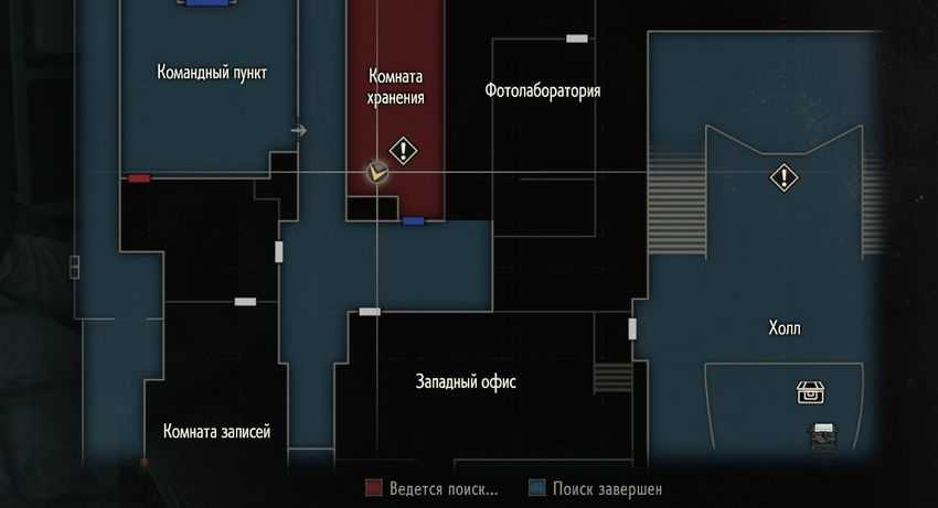 Пожалуй, наиболее ценное помещение во время раннего прохождения игры. Внутри кладовой комнаты (на первом этаже ПУ), можно будет найти довольно много шкафчиков и пульт управления, благодаря которому можно открыть все условные ячейки. Только вот проблема в том, что на панели управления не хватает двух ключевых кнопок. Поэтому и ввести большую часть номеров никак не получится без них. За то изначально можно будет открыть шкафчик под номером 106 и 109. Вводите эти номера при первой возможности, после чего забирайте патроны вместе с плёнкой (плёнку можно будет проявить внутри Фотолаборатории по соседству). Что касается кнопок, то их можно будет отыскать внутри вышеописанных переносных сейфов (первым делом лучше вставить кнопку на цифру 2, чтобы открыть сразу два шкафчика). А внутри шкафчиков в «Комнате хранения» можно будет найти следующие предметы: