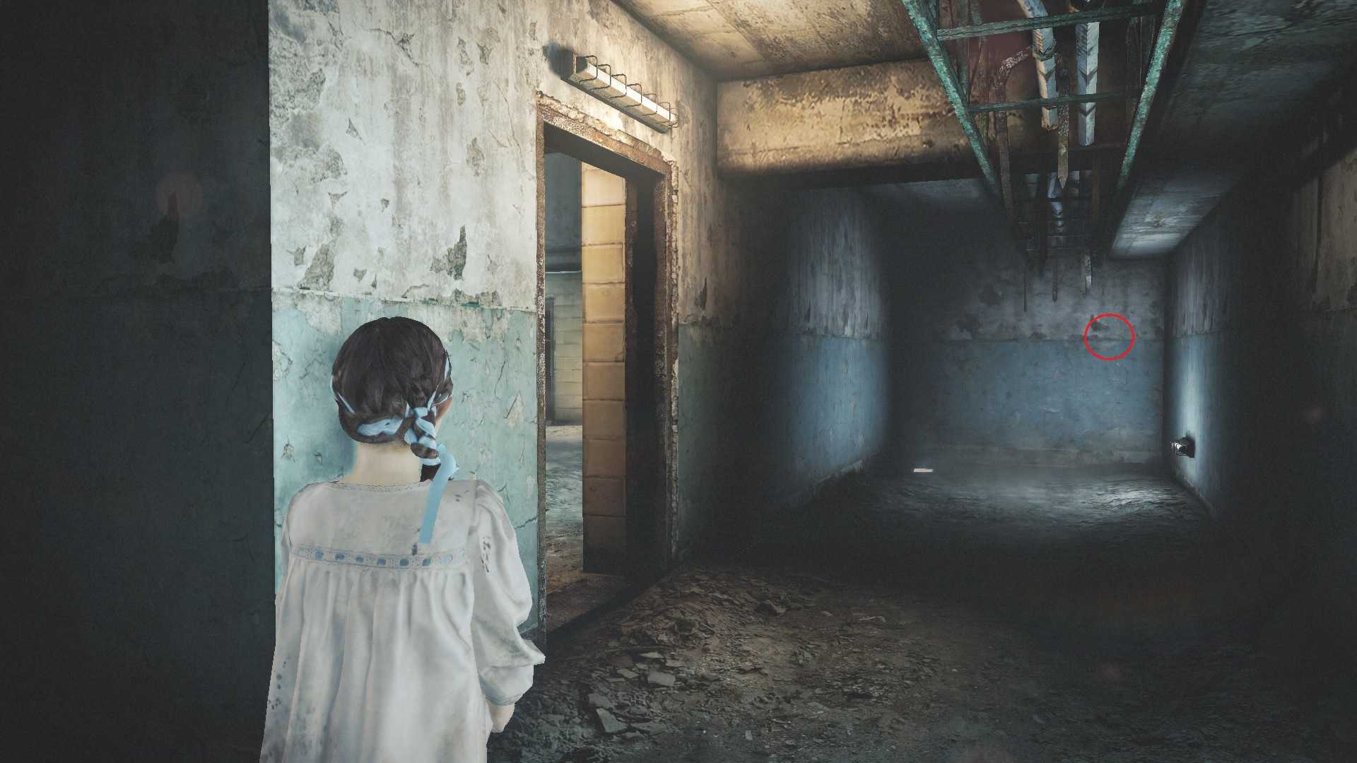 Личинка жука (1/6): Попав в коридор, в который вы подсаживали Мойру, сворачиваем в зал с механизмом для казни, а от туда выходим в коридор. Берём Наталью под своё управление, в тупике подбираем кирпич и справа на стене находим красный “дымок”, в него и бросаем кирпич. Все жуки невидимы и доступны для атаки только Наталье.