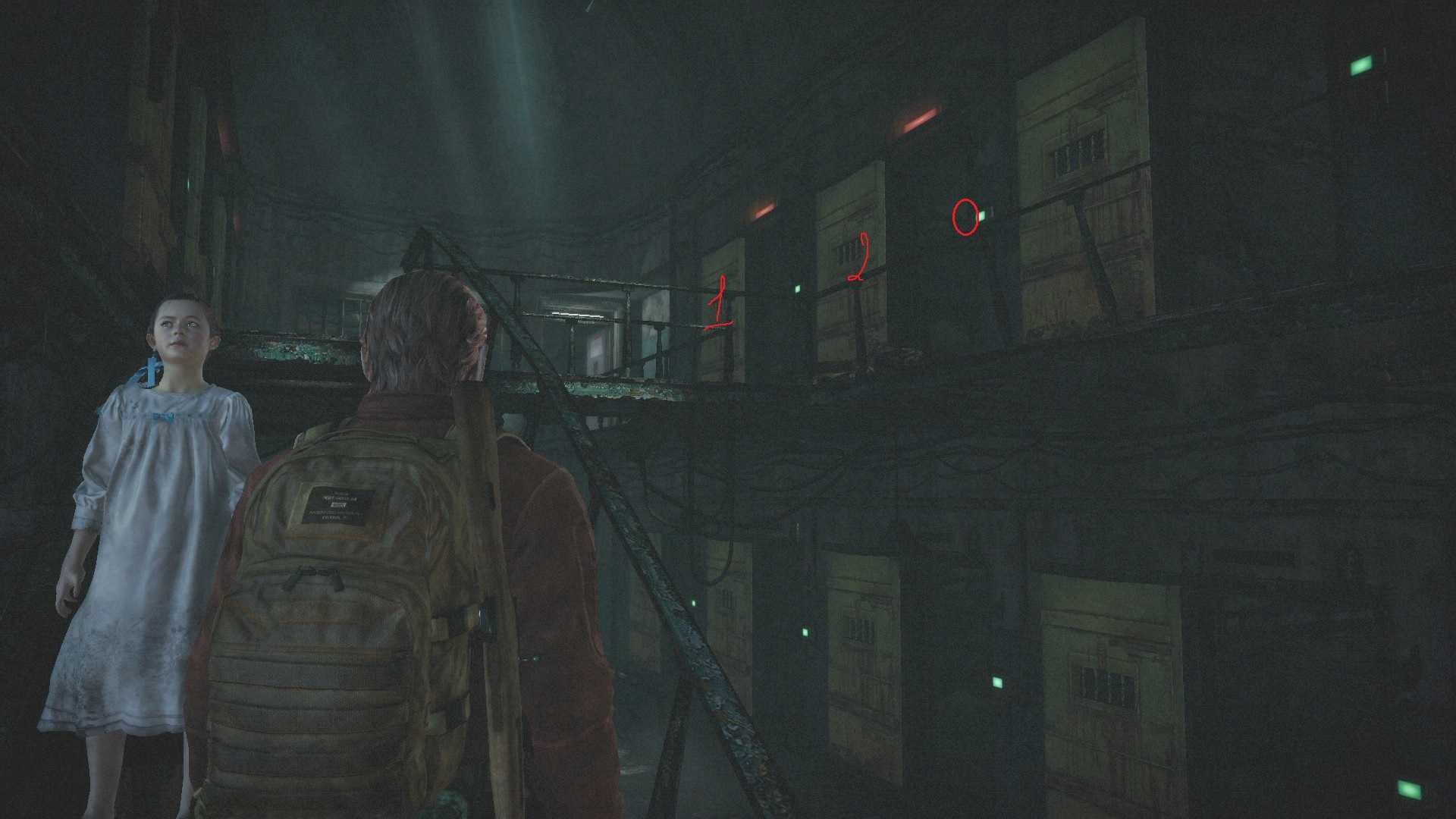 Личинка жука (3/6): Заранее возьмите кирпич и в самой дальней камере по правой стороне лезьте в пролом. (Этот путь сделан для тех, кто при игре за Клер использовал огнемёт для защиты от толпы зараженных). Спрыгнув с уступа на решётку не спешите спрыгивать далее. Над дырой на стене находим жука.