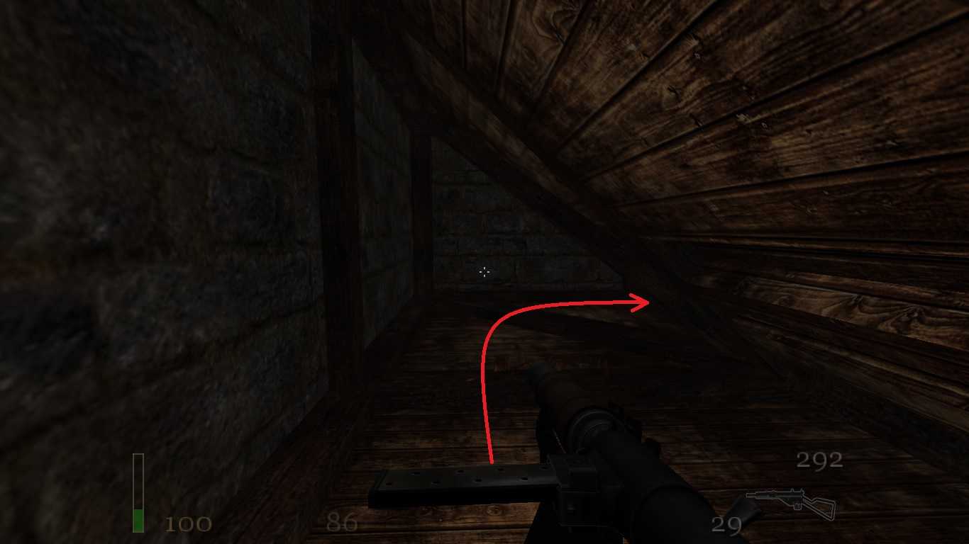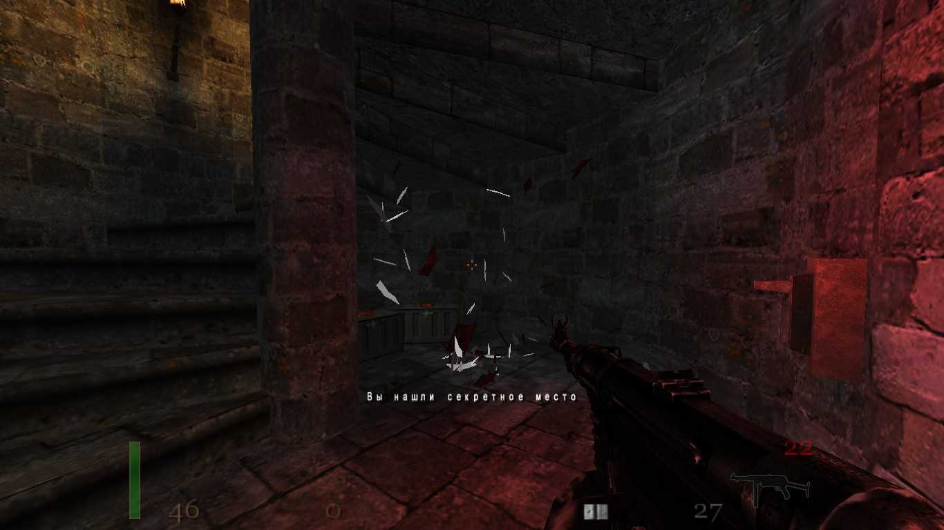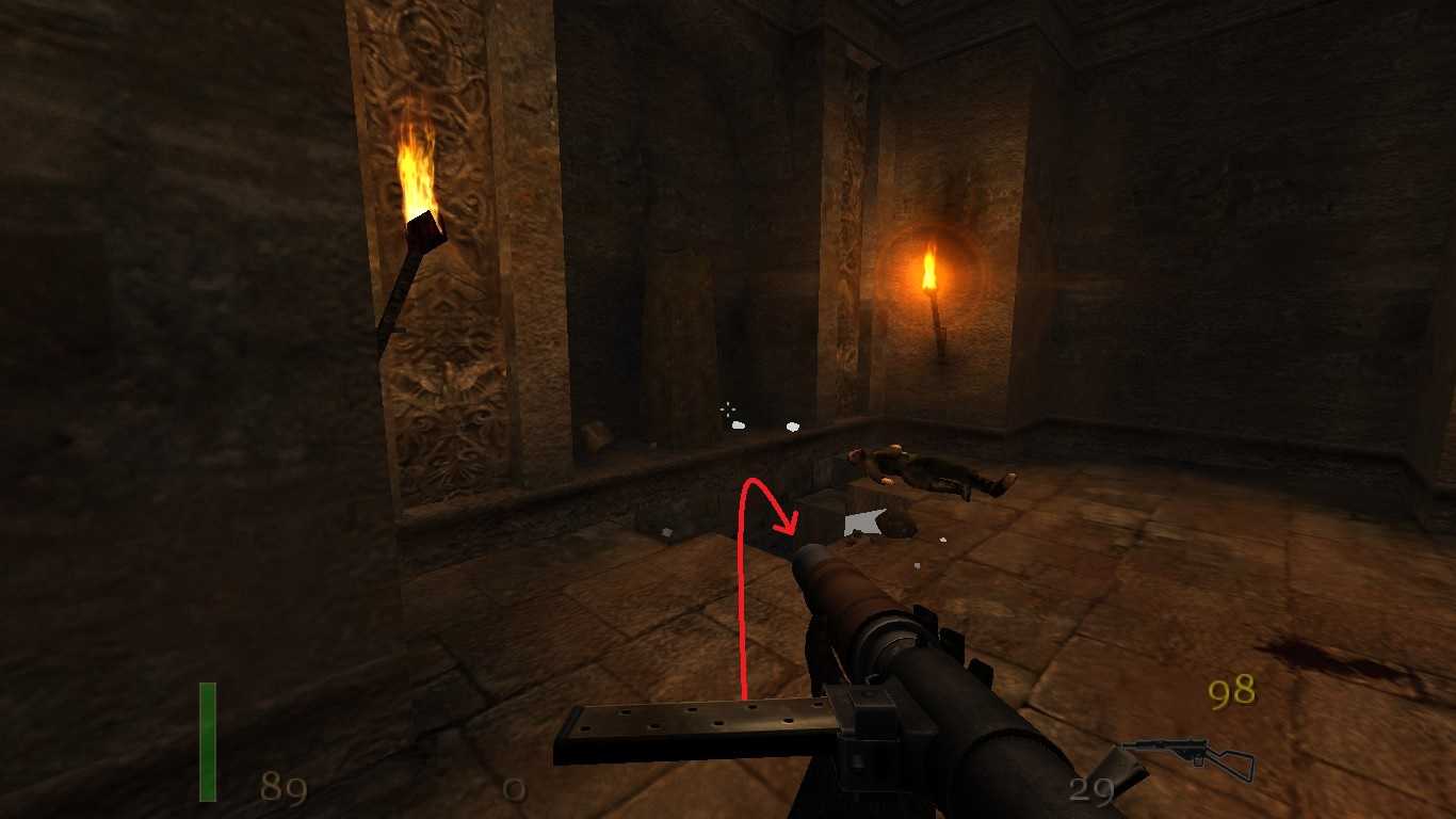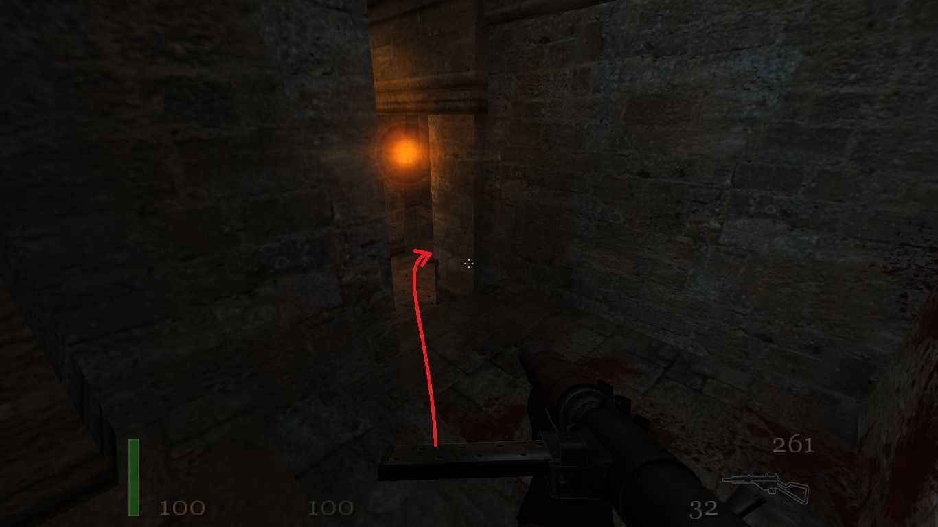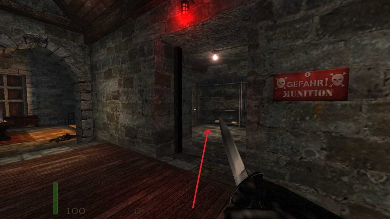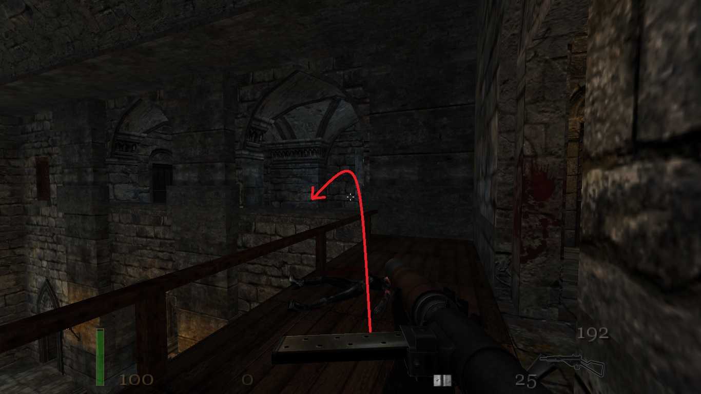 4:После победы над двома немцами, которые сделали дыру в потолке, прыгаем вниз и противоположно от двери есть арка заложенная кирпичами.