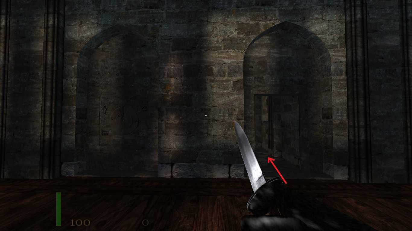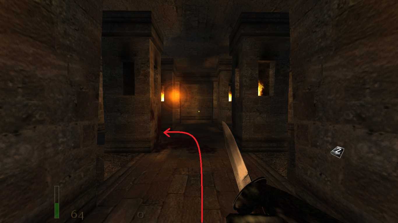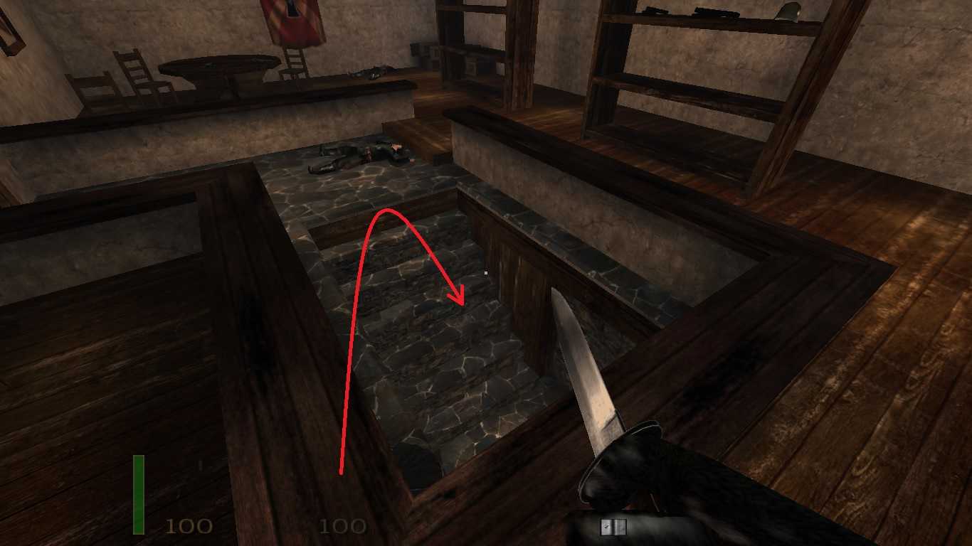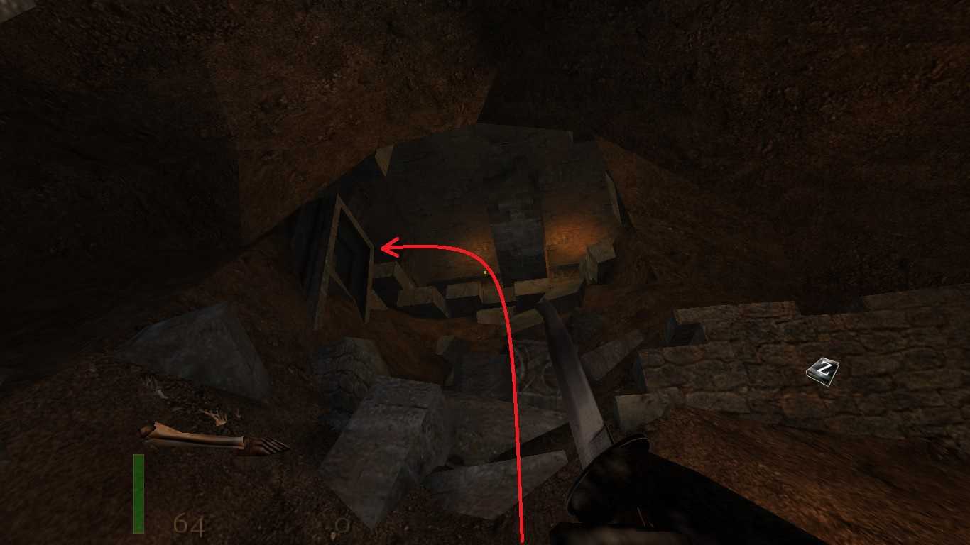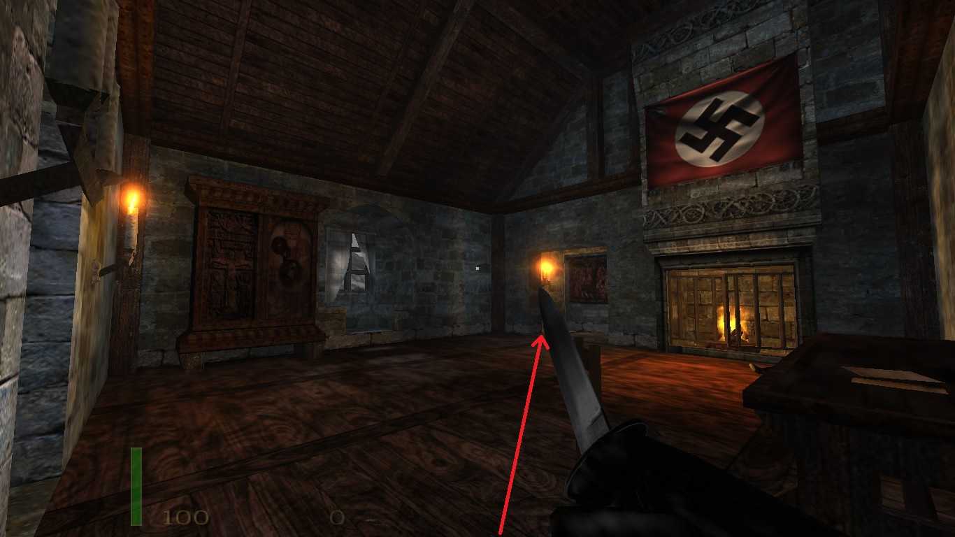 4:После победы над двома немцами, которые сделали дыру в потолке, прыгаем вниз и противоположно от двери есть арка заложенная кирпичами.