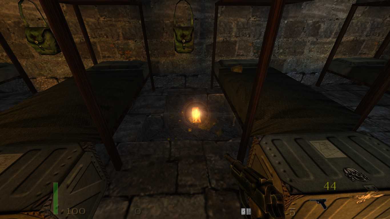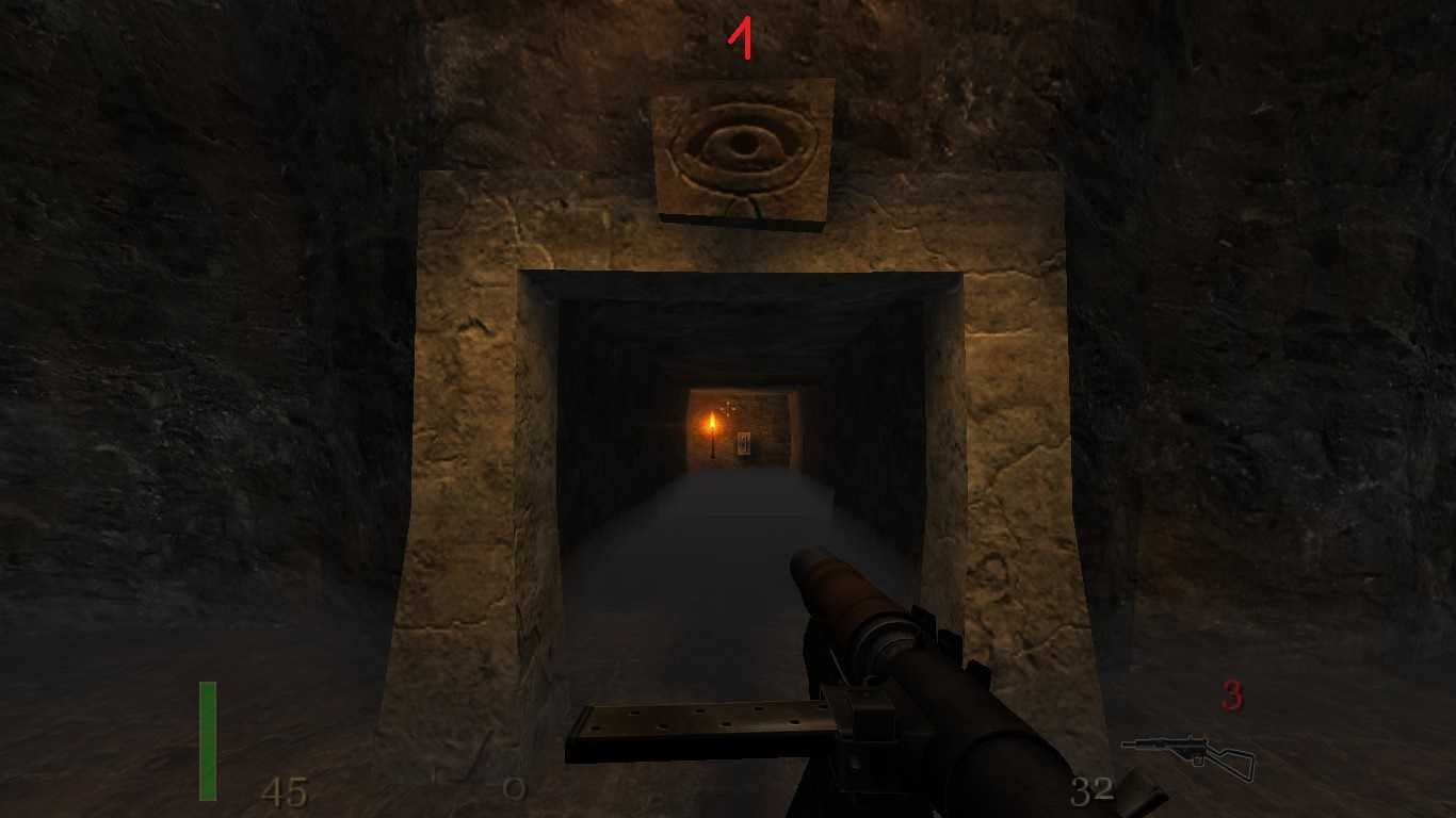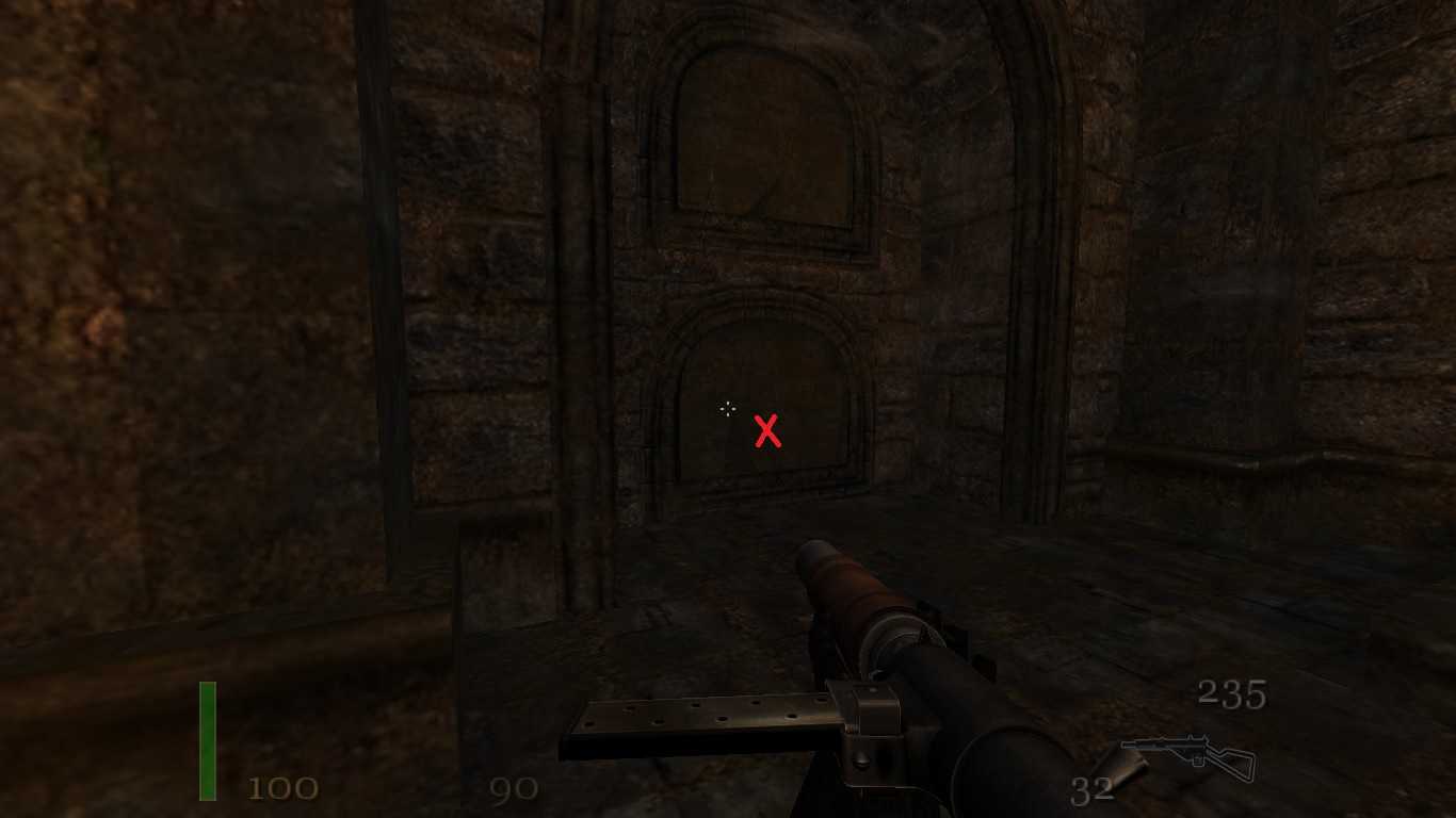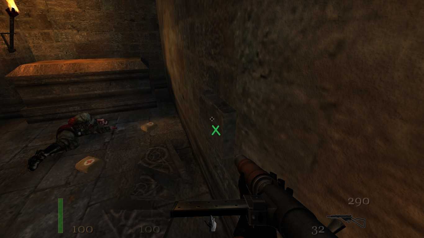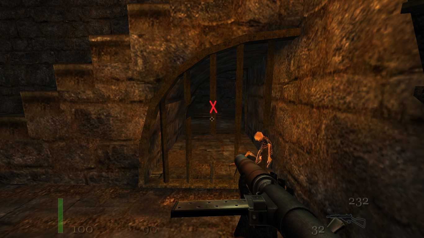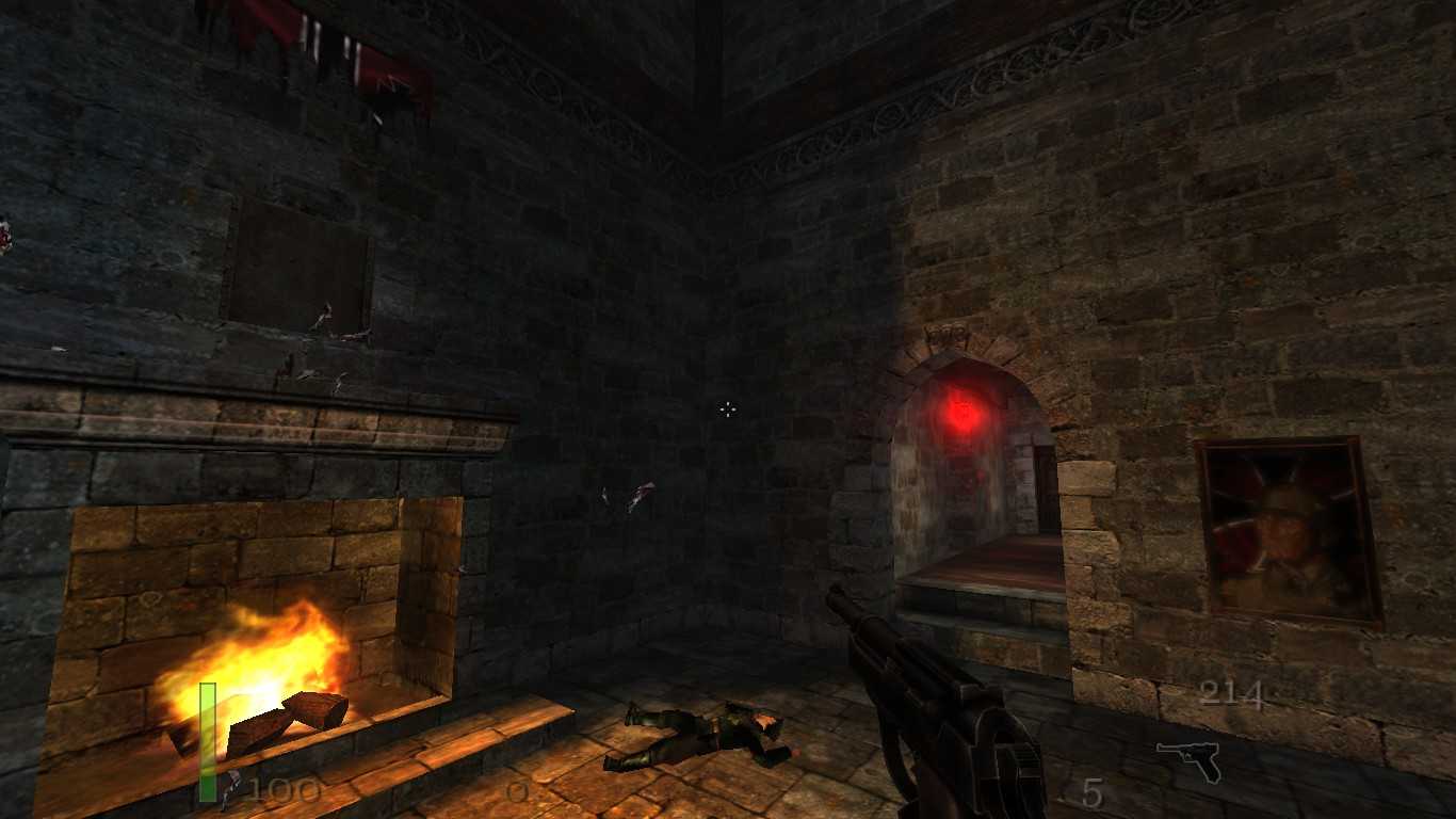 4:После победы над двома немцами, которые сделали дыру в потолке, прыгаем вниз и противоположно от двери есть арка заложенная кирпичами.