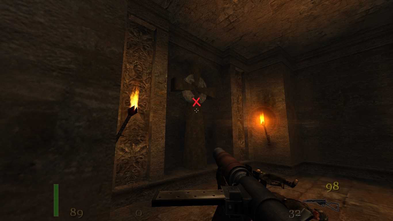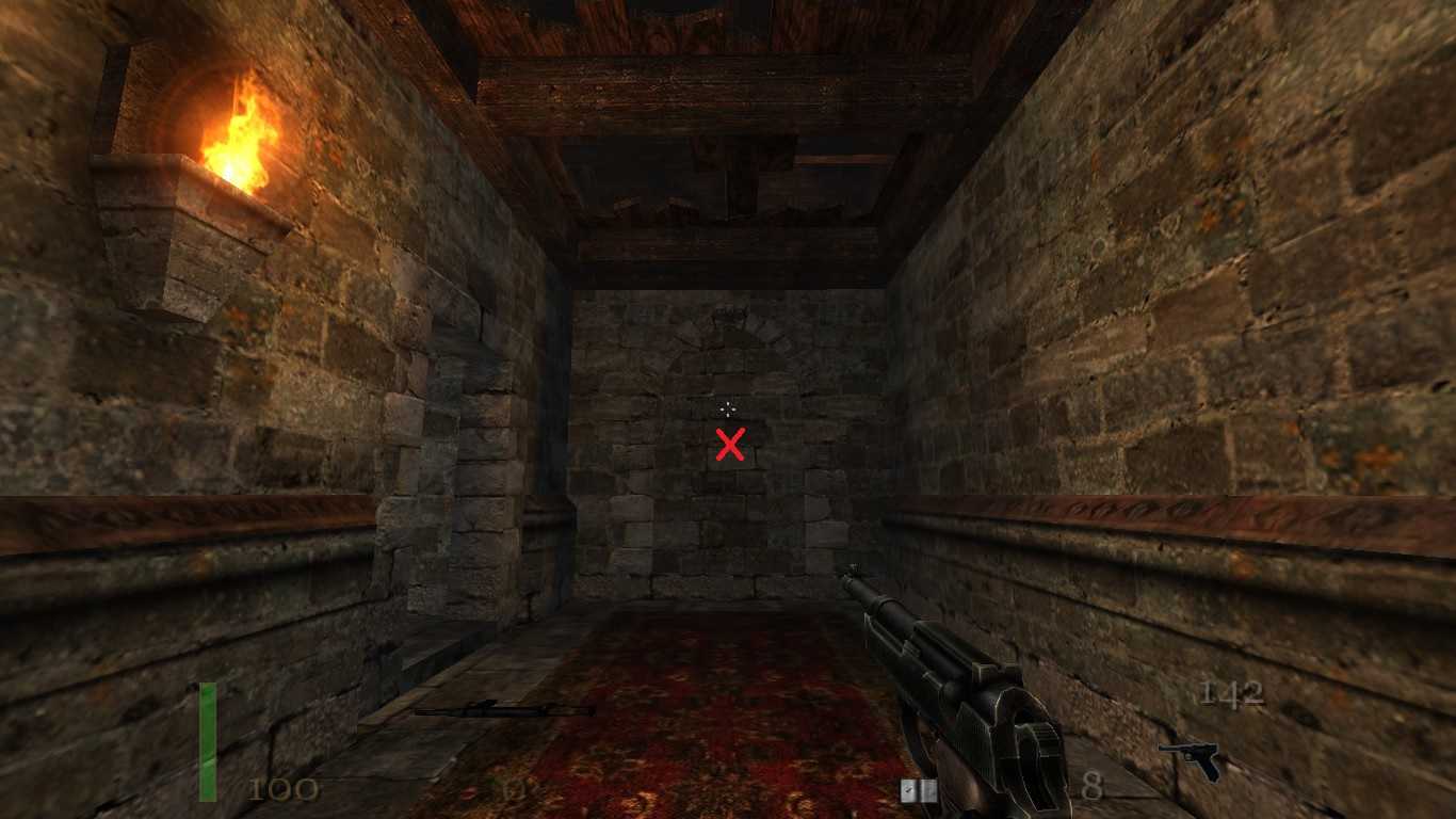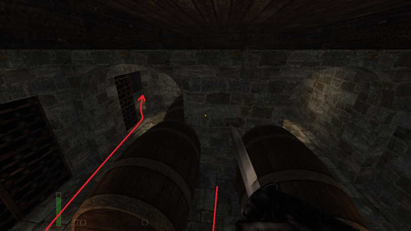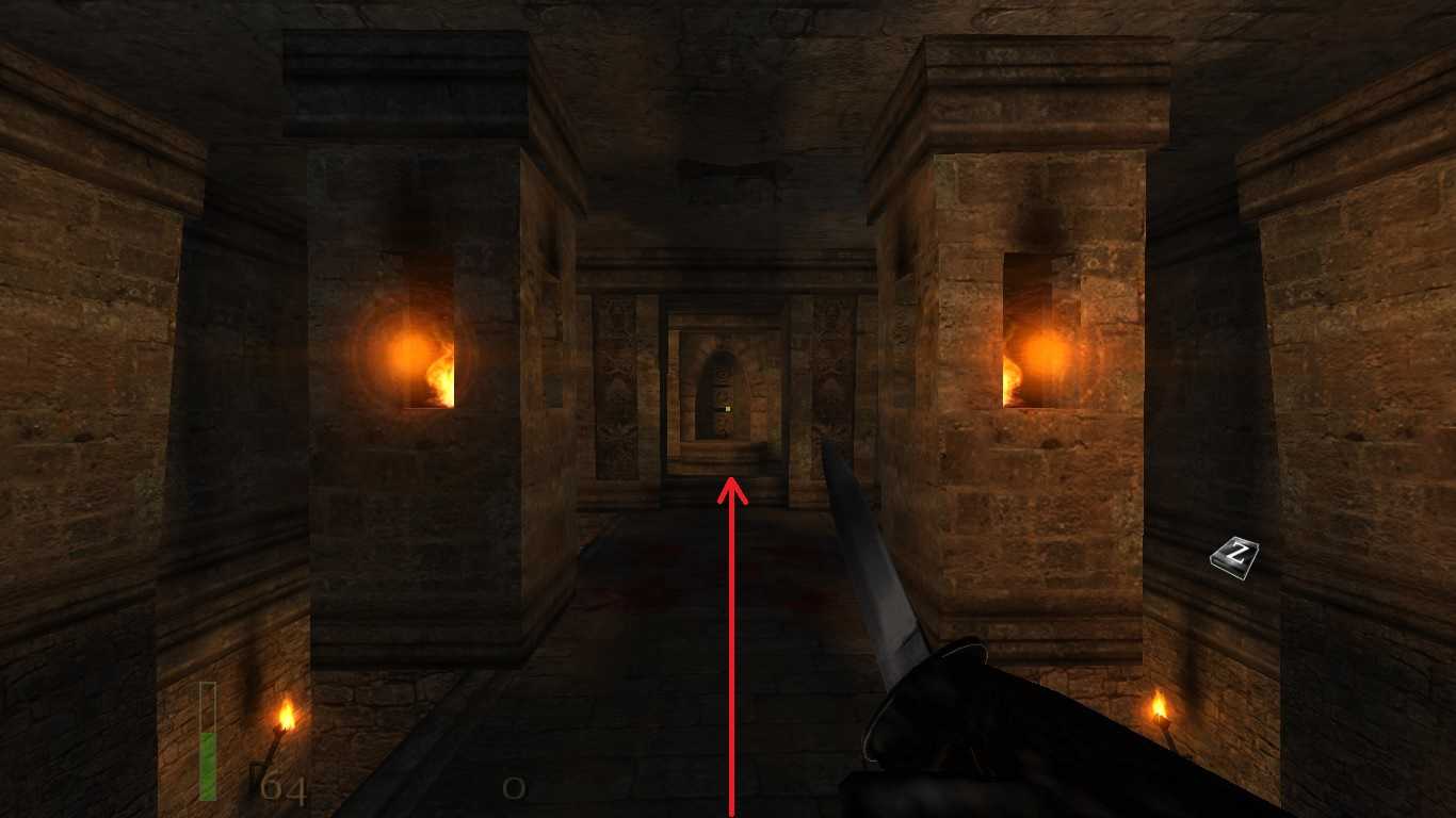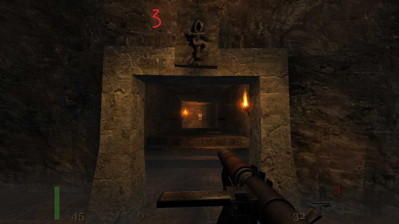 4:После победы над двома немцами, которые сделали дыру в потолке, прыгаем вниз и противоположно от двери есть арка заложенная кирпичами.