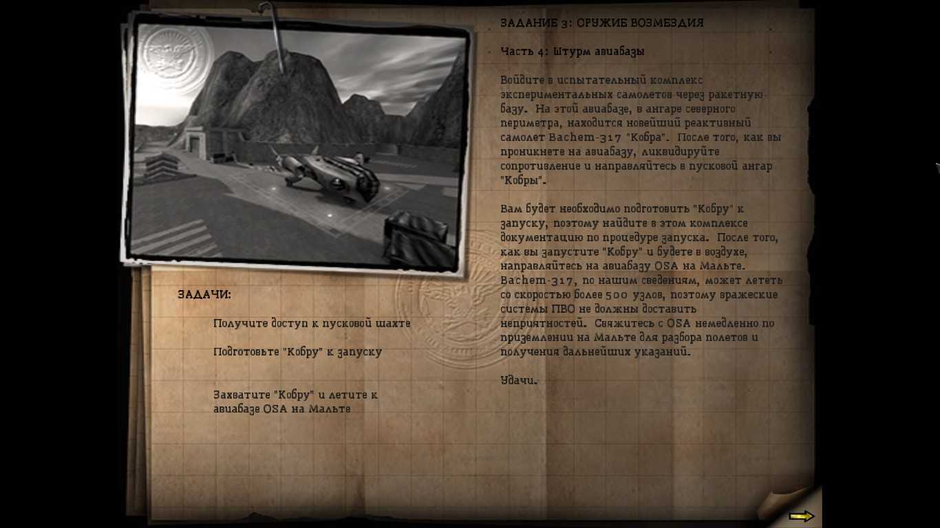 Блажкович проникает в склеп, где побеждает многочисленных зомби и эсесовцев, чтобы найти дневник Земпфа, проводящего чудовещные опыты. В склепе он встречает самого Земпфа вместе с Хельгой в тот момент, когда Хельге удаётся пробудить Чудовище. Это пробуждение стоит жизни самой Хельге, а главному герою удаётся справиться с этим древним злом. Далее его подбирает самолёт. В следующей миссии агенту удаётся помешать нанесению химического удара по Лондону и возвратиться на Мальту, угнав реактивный самолёт «Кобра». Далее ему удаётся спасти учёного, которого немцы заставляли разрабатывать секретное сверхскоростное оружие в городе Кугельштадт, который рассказывает о проекте «Суперсолдат».