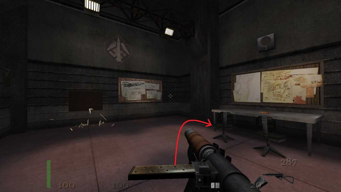 Затем возвращаемся в комнату где был первый секрет и мы видим открытый скад с боеприпасами.