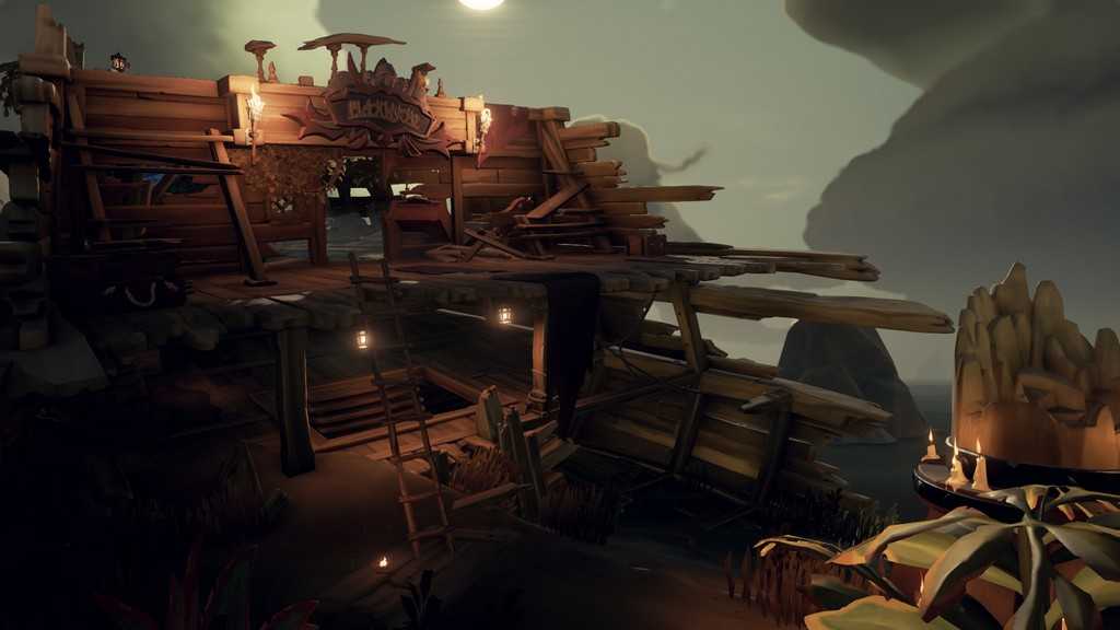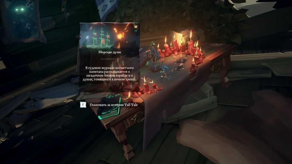 Какие ещё тайны скрывают остатки выброшенного на берег корабля Блэкуайч? Держим курс на остров «Залив затонувших кораблей» (М10), чтобы это выяснить. В восточной части острова находим корму корабля, забираемся в каюту капитана: