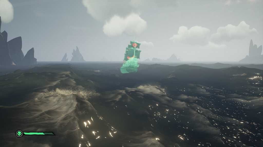 Отправляемся к изображённому в записях острову. Приблизившись к нему, увидим на горизонте Пламенеющую драконицу – следуем за ней (чтобы увидеть следующее местоположение призрачного корабля, необходимо приблизиться к нему достаточно близко).