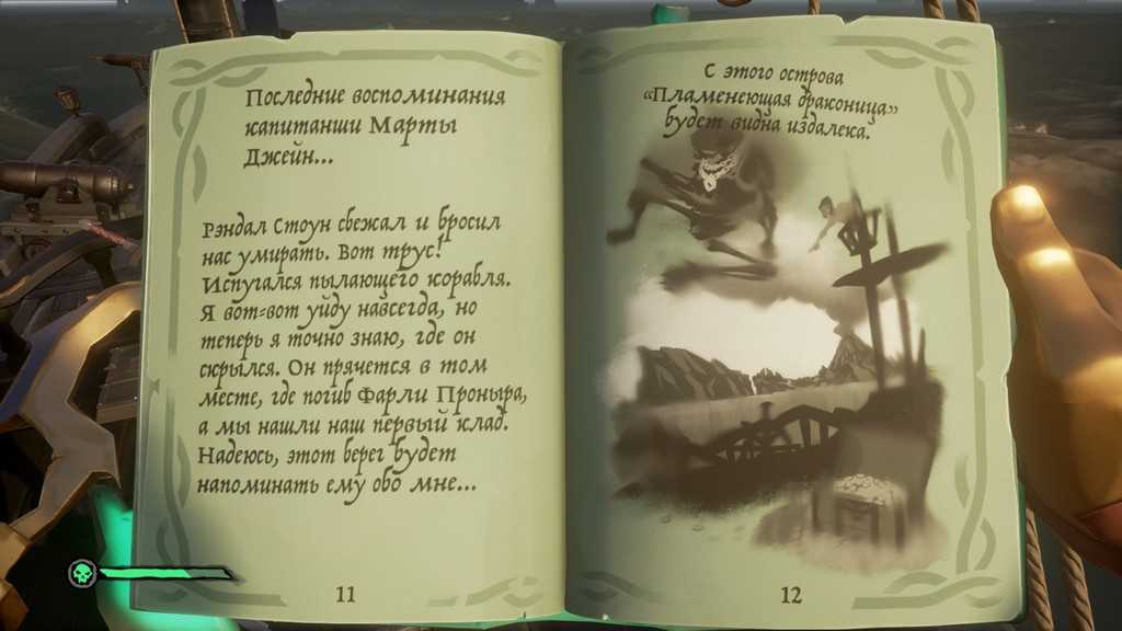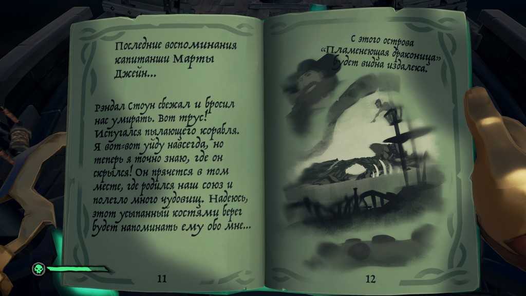Выслушав историю Марты, получаем дополнительные записи. Чтобы продолжить наши поиски, необходимо отправиться к острову, изображённому на двенадцатой странице. Возможных вариантов – два: