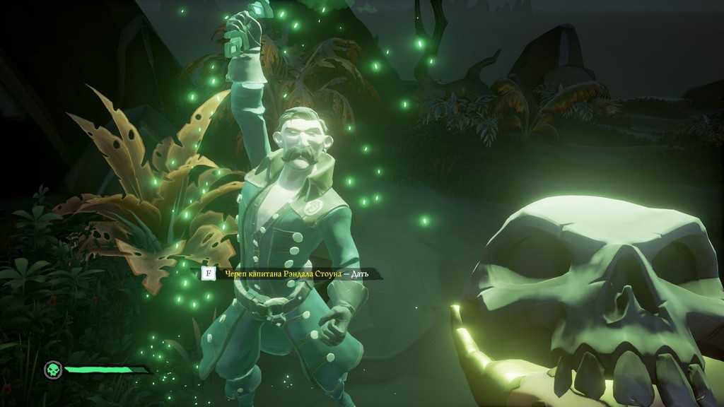 В месте, где скелет застрелил капитана, выкапываем второй череп и отдаём его Артуру, который появится поблизости: