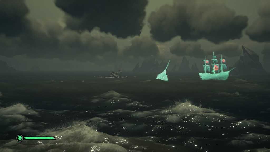 Вдалеке увидим баталию призрачных кораблей: два корабля ведут бой с Пламенеющей драконицей – сближаемся с ними: