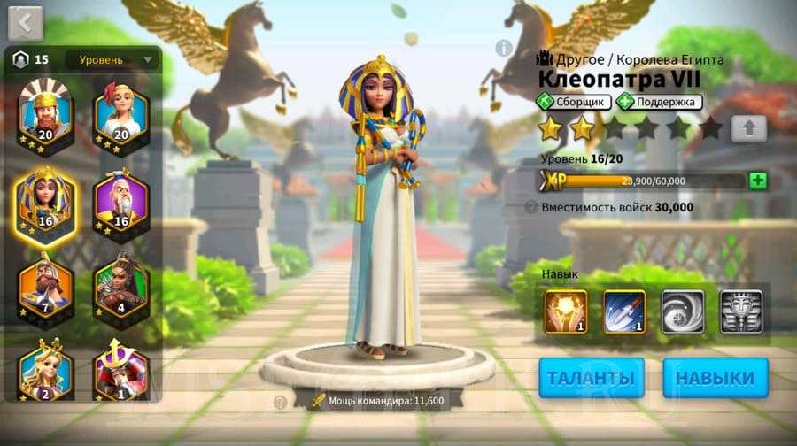 | Добыча ресурсов | Клеопатра VII, Жанна де Арк, Гай Марий, Шарка, Констанций |