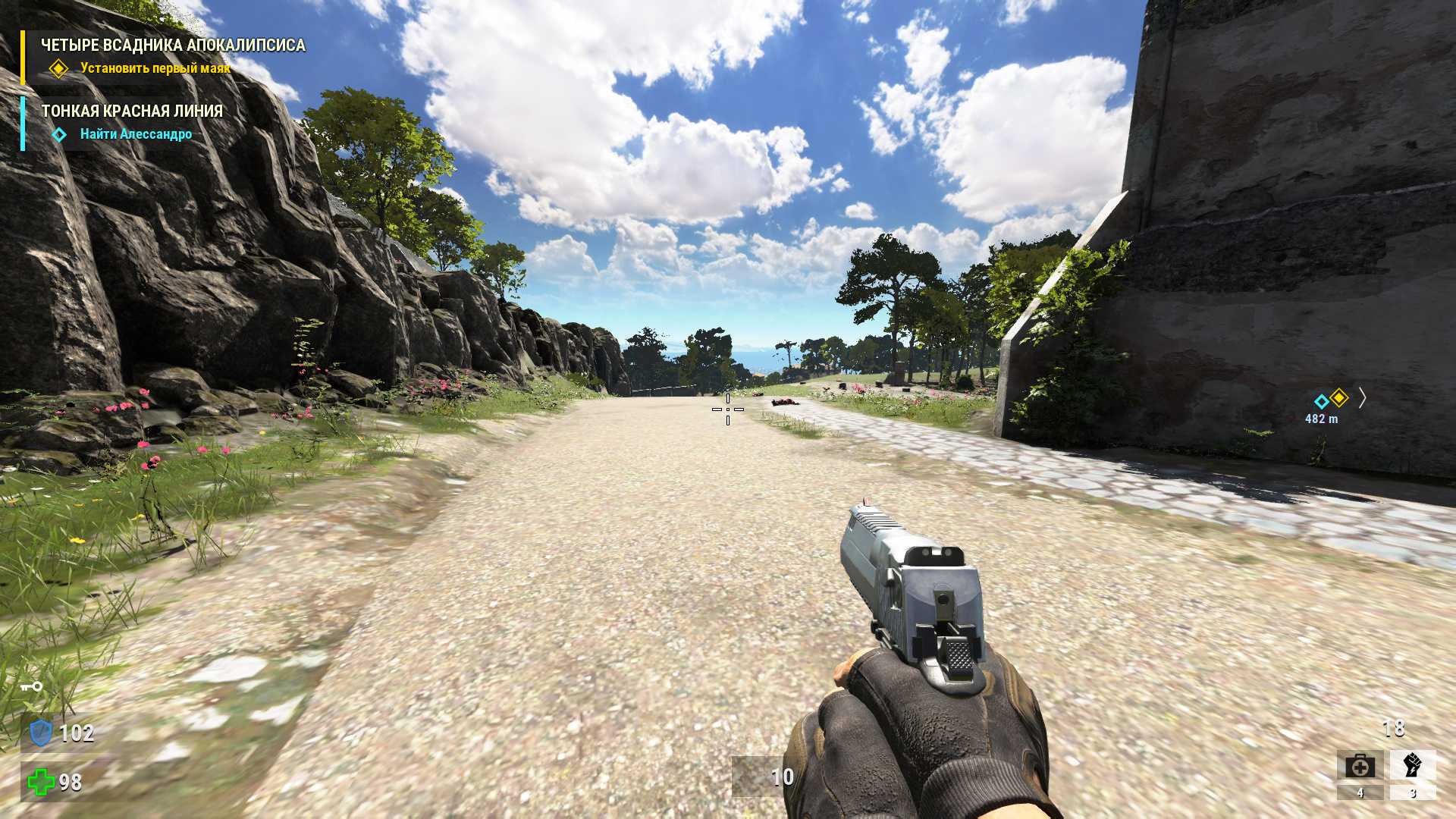 Двигайтесь по дорожке вправо от основного маркера, откройте ворота и доберитесь по тропинке до большой открытой территории. Зачистите ее и доберитесь до трупа Алессандро. Рядом будет кейс, а внутри — подствольный гранатомет для обычного дробовика. Квест выполнен. На обратном пути появится еще больше врагов, и вы сможете опробовать гранатомет.
