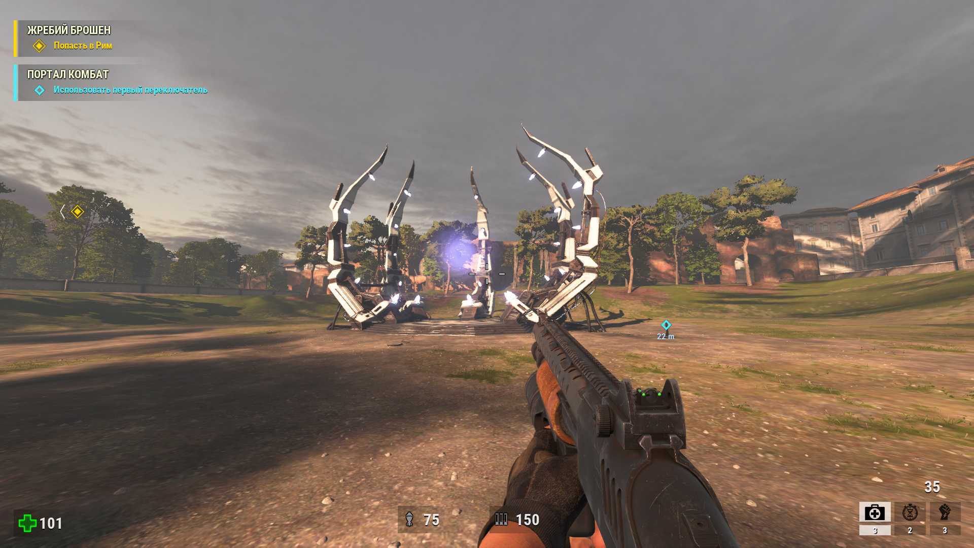 Спуститесь чуть ниже и подберите с пьедестала новое оружие — ракетницу. Дальнейший путь совпадает, но когда маркеры разделятся, то сверните направо, в направлении синей метки. Убивая вампиров, доберитесь до запертого кейса. Рядом с ним есть записка и диктофон, а внутри спрятан новый гаджет — искажение времени. Бросая такую гранату, вы создаете пространственный пузырь. Все враги и их пули, находящиеся внутри, временно замедляются.