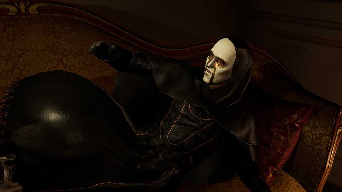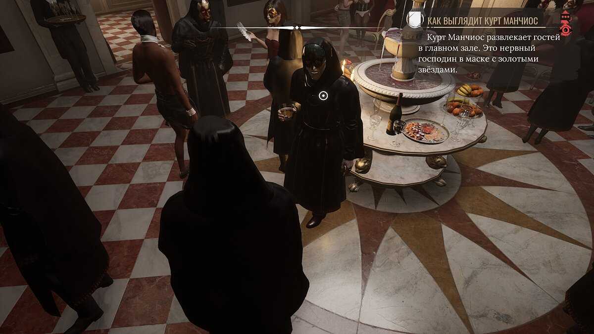 Надеваем предметы одежды «Князь тьмы» и «Маска на лицо». Следуем к указанной на скриншоте точке и заходим в особняк Манчиоса.